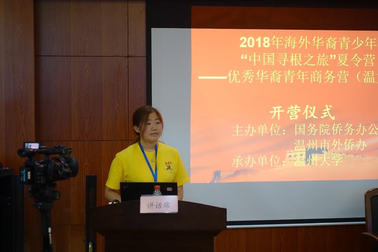2018年7月19日上午,由国务院侨办、温州市外侨办主办,LY体育·(国际)官方网站承办的2018中国寻根之旅“相约温州营”优秀华裔青年商务营活动在LY体育·(国际)官方网站国际教育学院报告厅举行开营仪式。