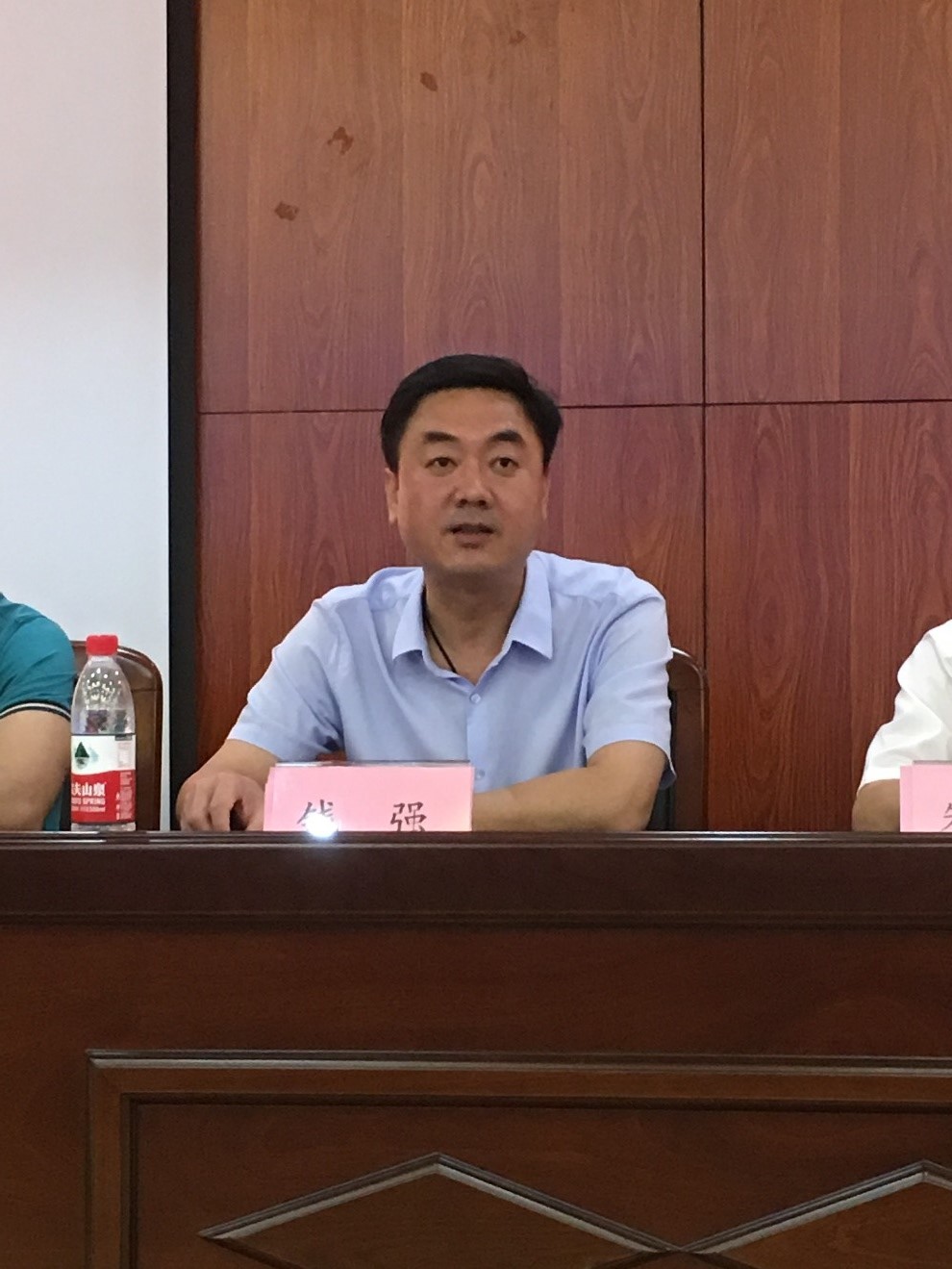 温州市侨办副主任朱玉贵先生为2018年“中国寻根之旅”夏令营“相约温州营”优秀华裔青年商务营授旗,由郑天豪和丁冰冰两位营员共同来接旗。