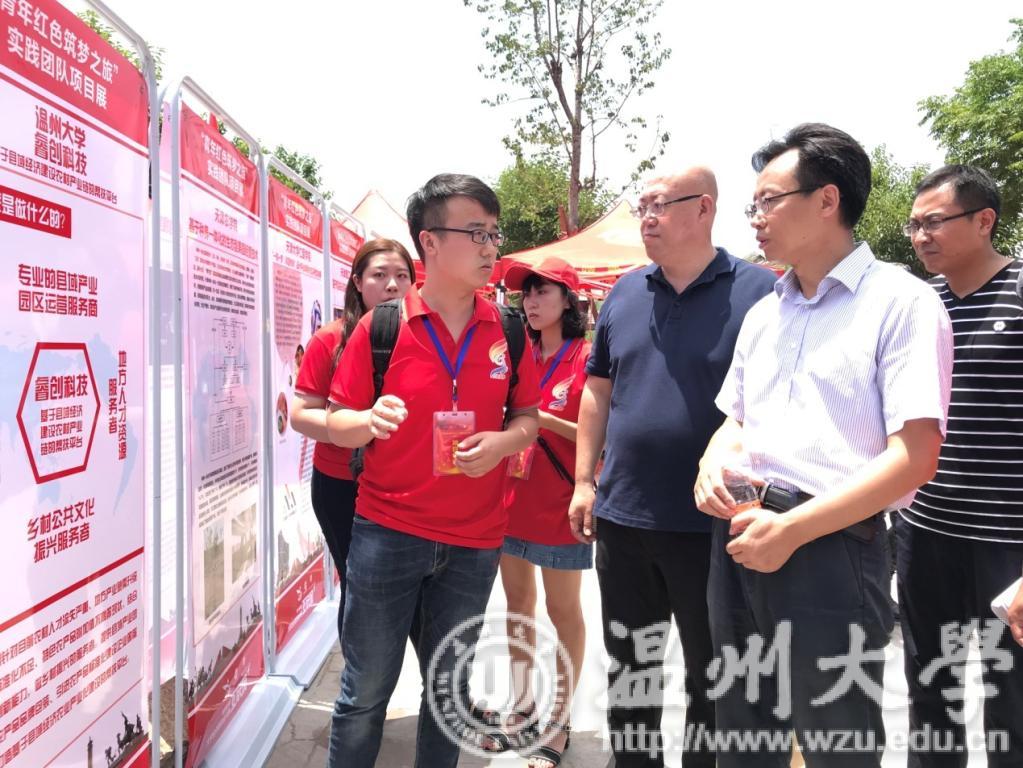 我校学子赵坤、杨亮的“睿创科技—基于县域经济农村建设产业链的帮扶平台”项目作为浙江省推荐的5支优秀项目团队之一参加此次对接活动,受到吴爱华的肯定与鼓励。在与沂蒙县县长孙德士汇报洽谈过程中,孙德士希望该项目能够对接帮扶沂蒙县的农业项目,助力乡村振兴。