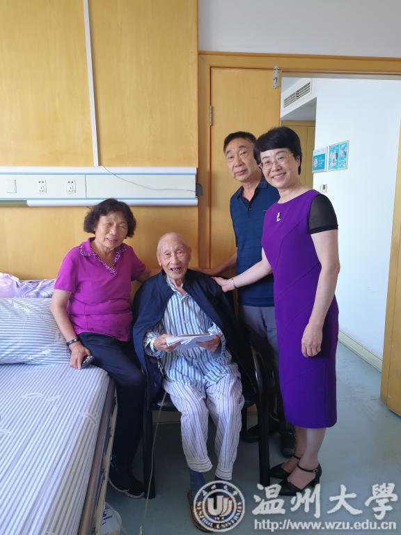 林娟娟看望慰问百岁离休干部吴佩之同志。吴佩之同志系原温州师范专科学校党委书记,是一位老党员、老红军。林娟娟向吴佩之同志表达了节日的问候,细致了解他的身体状况和家庭情况。当得知不久前,吴佩之同志应我校瓯江学院邀请,在病榻上为该院即将落成的“党员之家”题写名称,她非常感动。林娟娟指出,广大老党员党性强、作风正,忠诚一辈子、奉献一辈子,是我们党的宝贵财富,他们对中国共产党有着坚定的信仰,他们矢志不渝的精神值得我们每一位党员去学习。
