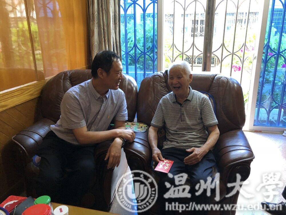 6月21日下午,牟德刚副书记专程来到平阳县昆阳镇,看望慰问91岁离休干部、原平阳师范学院党组成员林良顺同志。在亲切的交谈中,林老回忆起温州解放前夕发动民工稳定社会的往事,如数家珍。牟书记关切地询问林老的生活、健康情况,并祝他幸福安康。牟书记对老党员们为学校建设与发展所做出的贡献,表达了诚挚的敬意和感谢,希望老党员们能一如既往地为学校建设提供宝贵的指导意见,实现学校又好又快发展。当天,牟书记还去了学校离退休党总支平阳支部活动点,与离退休党总支平阳支部书记和离退休协会平阳分会会长交谈,调研基层党组织建设情况。