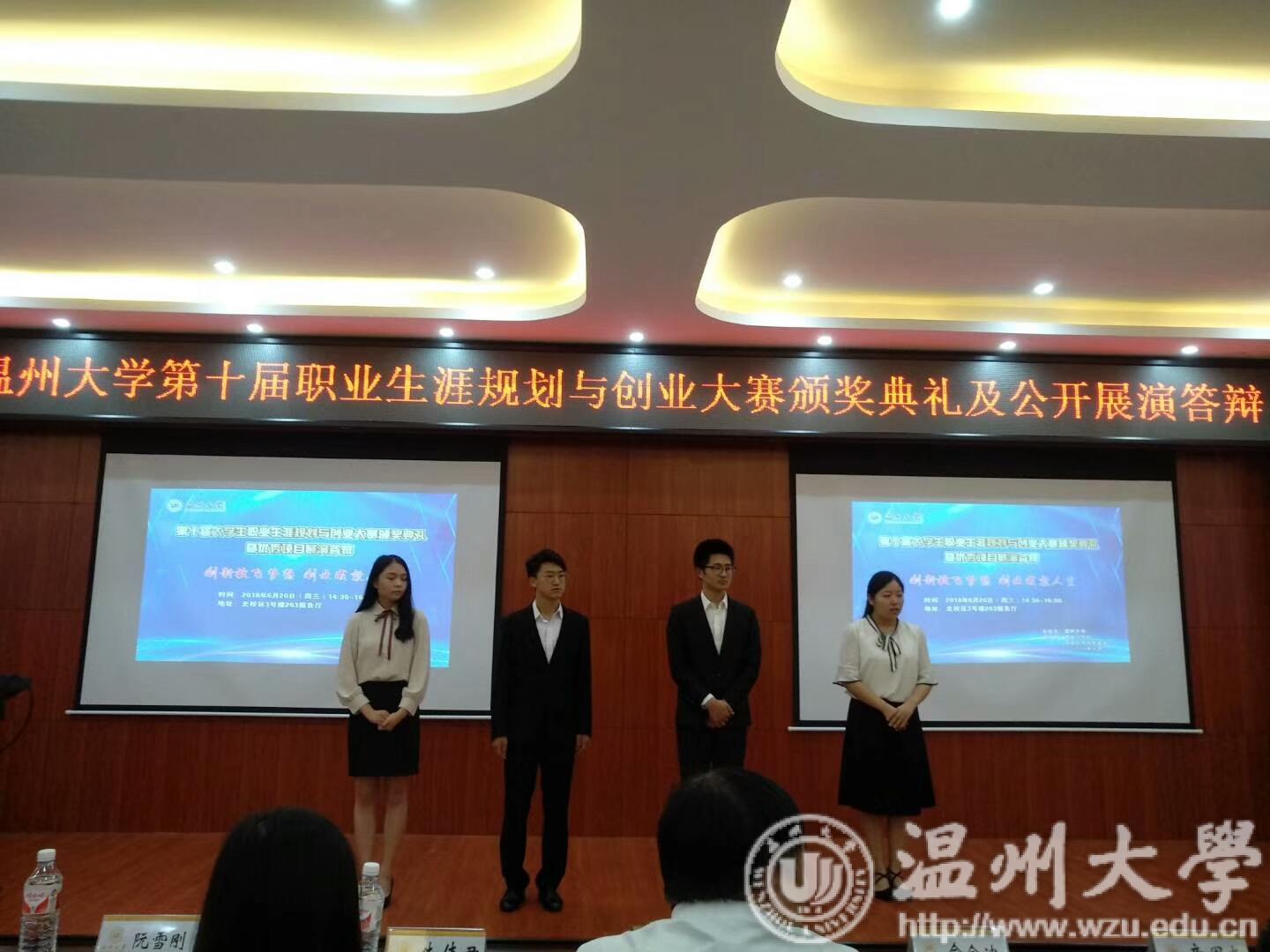 在颁奖典礼上,赵敏致辞。他指出,推动大学生职业生涯规划与创业大赛健康持续发展是我校就业创业工作贯彻落实党的十九大精神的具体而又生动的实践。我校充分把握“以赛促教、以赛促学”的大赛宗旨,借助大赛的东风,打造了以“课程建设品牌化、实践体验多样化、指导活动全程化、师资队伍专业化”的“四化”生涯教育与就业指导体系,构建了“立足区域、分层分类、专创融合、协同递进”的创新创业人才培养体系。