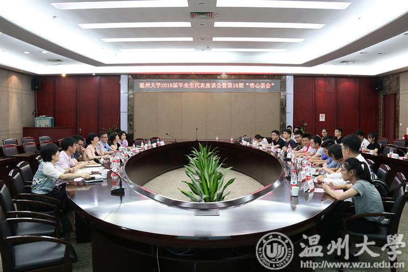 6月,一个绚烂美丽的夏季,一年收获欣喜的毕业时节。13日下午,学校2018届毕业生代表座谈会暨第19期“明心茶会”在南校区岩松堂白鹿厅举行。我校优秀毕业生代表齐聚一堂,回顾美好的大学生活,深情话别母校,为学校的发展建言献策。校党委书记林娟娟,有关部门、学院负责人参加座谈。