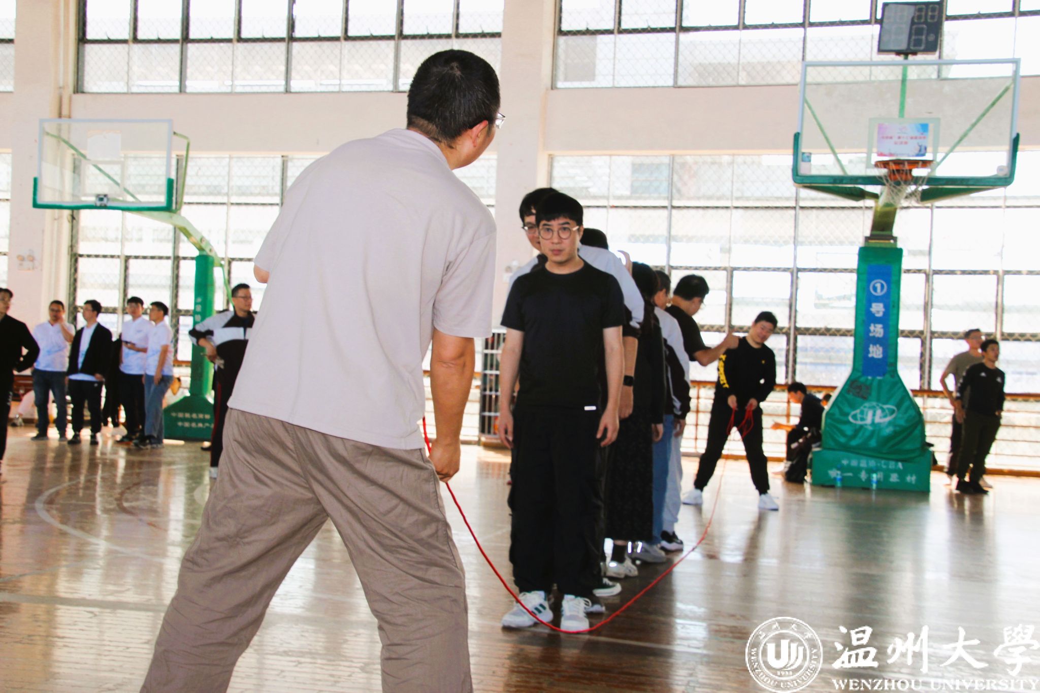一根跳绳,连接的是团结友爱;每一声呐喊,是他们拼搏的证明。他们就是——教职工运动员。飞舞的跳绳中,他们身轻如燕,尽情展示风采,也享受着比赛的每一个瞬间。