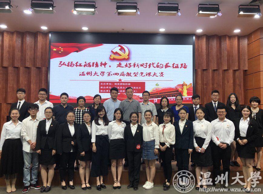 日前,我校第四届微党课教师组、学生组系列决赛在岩松堂会展中心陆续举行。大赛由校党委组织部主办、马克思主义学院党总支承办、各分党委(党总支)协办,以“弘扬红船精神,走好新时代的长征路”为主题,共有37名师生党员参加,校党委副书记牟德刚,相关部门负责人,全校200多名师生党员代表观摩比赛。