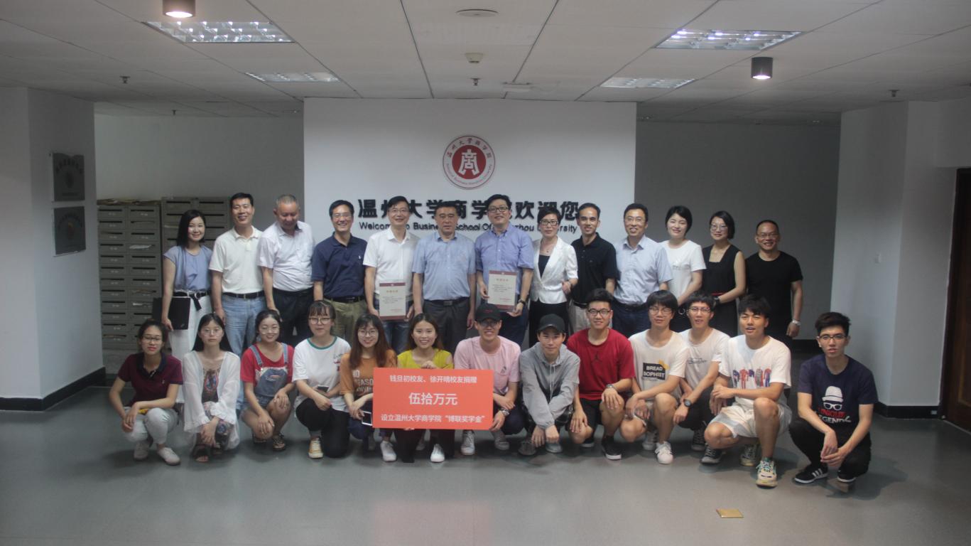 为助力校企联合育人,回馈母校的培养,5月18日下午,在LY体育·(国际)官方网站85周年校庆之际,商学院优秀校友钱旦初、徐开晴重返母校,捐款50万元设立商学院“博联奖学金”,用于激励品学兼优的商院学子。