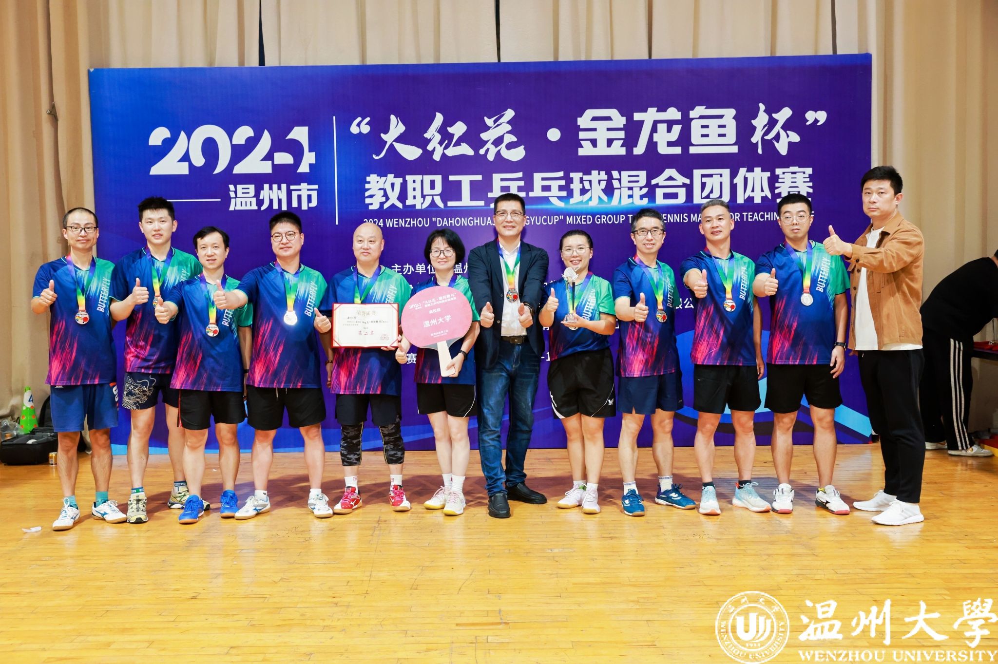 11月9日-10日,温州市教育工会主办的2024年温州市“大红花杯”教职工乒乓球混合团体赛在温州市第二实验中学举办。我校教职工代表队参加了高校组的比赛,并取得了高校组亚军的好成绩。