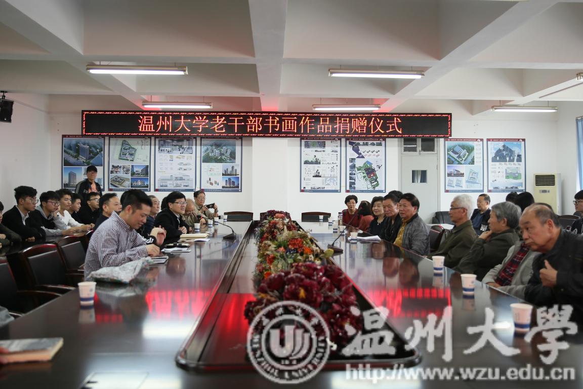 春暖大地,绿意盎然。4月4日上午,我校老干部书画院老书画家一行二十人,来到学校茶山南校区建筑工程学院,向该学院赠送书画作品,受到师生们的热烈欢迎。校党委委员、宣传部长潘玉驹,老领导金礼义、林选清,老书画家与师生代表近60人参加捐赠仪式。