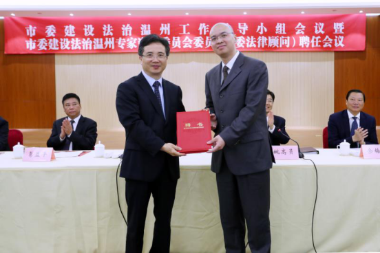 4月4日上午,市委召开建设法治温州工作领导小组会议暨市委建设法治温州专家咨询委员会委员(市委法律顾问)聘任会议,我校副校长方益权教授、法政学院院长王宗正教授被聘为市委建设法治温州专家咨询委员会委员与市委法律顾问。