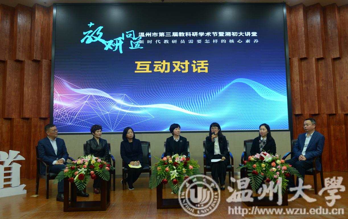 为进一步促进温州基础教育教科研发展,增强温州教育的文化自信,3月30日,由温州市教育教学研究院、我校教师教育学院共同举办的温州市第三届教科研学术节暨溯初大讲堂于南校岩松堂雁山厅举行。华东师范大学教育科学学院教授、博士生导师胡惠闵教授,温州市教育局党委委员、副局长王剑波,校党委委员、组织部长郑信军,全市各县(市、区)教育局负责人,各学科300多位教研员,全校师范类专业师生莅临现场,共同探讨“新时代教研员需要怎样的核心素养”。