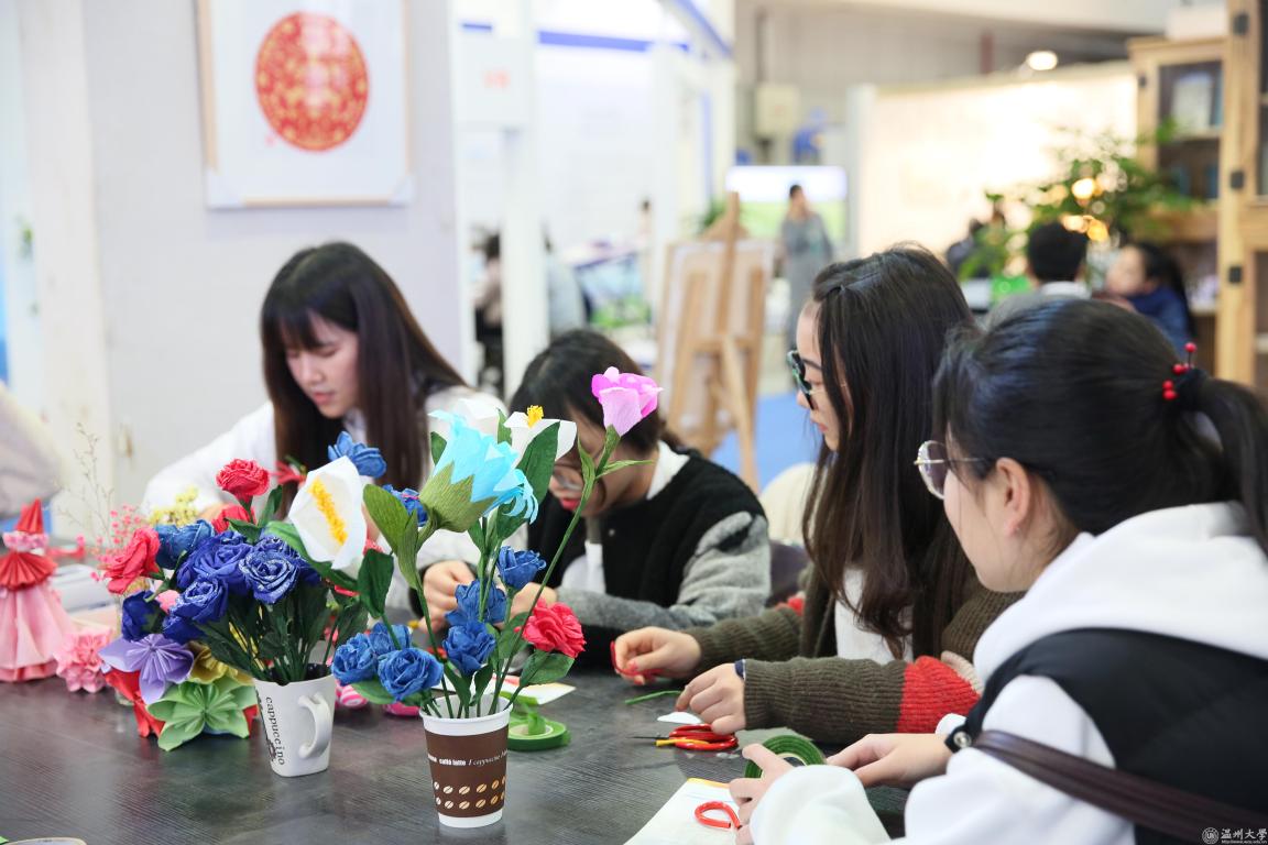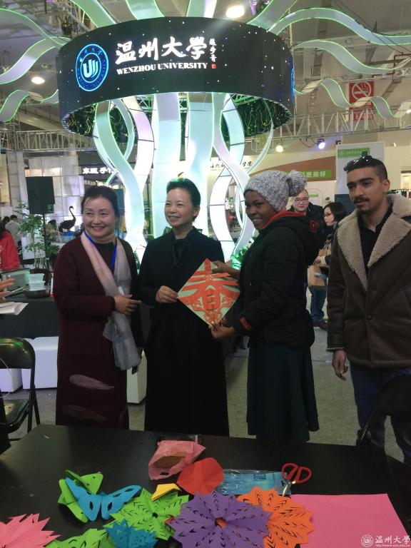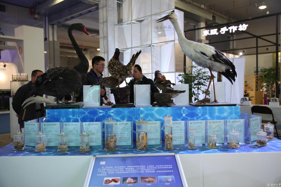 此次展出,我校各学院纷纷将专业特色融入实践,让市民在体验中感受学习之乐。化材学院的学生为参观者提供制作DIY手工皂的机会;生环学院展示了以螺类为代表的温州海洋生物标本;教师教育学院通过轻泥制作、书法教学、乐高机器人操作等活动,融入将“自在教育,乐在其中”理念;国际教育学院国际学生剪纸,让他们感受浓浓中国风味……我校展出的发绣作品更是让参观的市民们啧啧称奇!远远看着,那一颗颗枇杷色泽分明,水中的游鱼灵动活泼,可凑近了一看,才发现它们竟然都是由一根根头发制成的。更有较真的参观者盯着发绣展品仔细研究,方才确认画面上的线条真是纤细的头发。