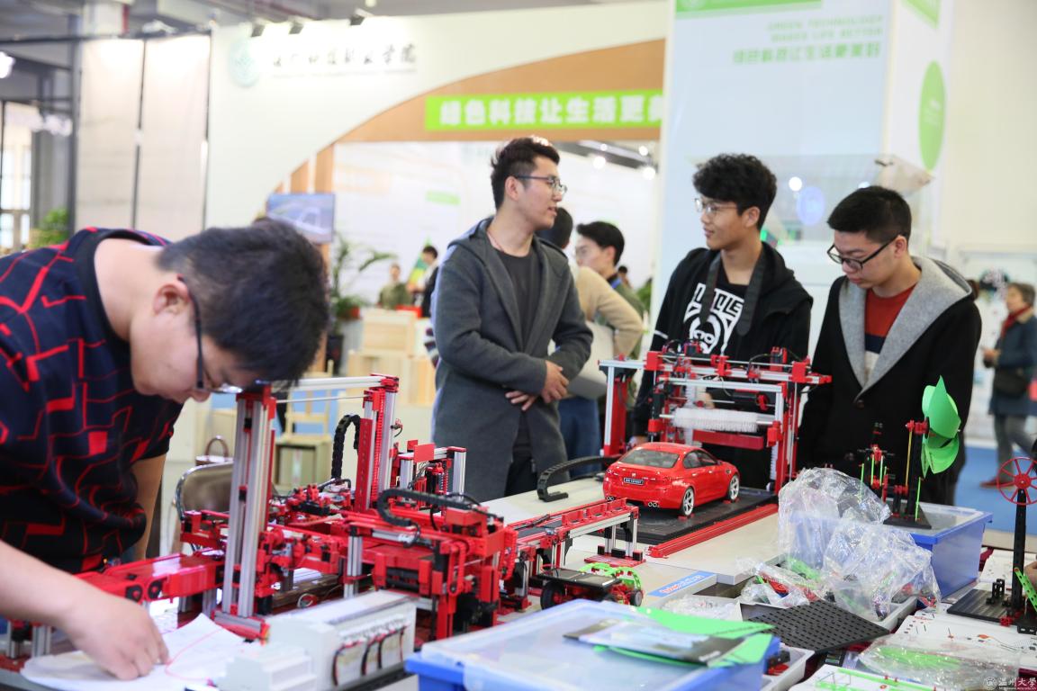 我校展区的自动洗车模型周围挤满了参观者。机电工程学院负责人操作模型进行展示——只需要按下开关,就能自动完成洗涤、烘干一条龙洗车服务。其简单快捷的操作方式引起市民极大兴趣:“现在市场里是否有这样的机器了?这样的机器大概需要多少钱?会占用多大的地方?”展区还展示了用于运输货物的堆垛流水线、太阳能小车、风力发电机、太阳跟踪仪、水轮机、太阳能充电站等模型。