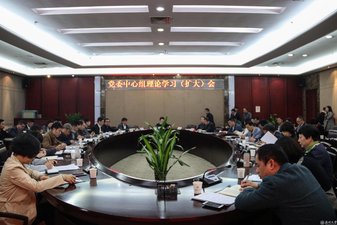 3月15日上午,学校召开党委中心组理论学习(扩大)会。校党委书记林娟娟主持会议并传达党的十九届三中全会精神和十三届全国人大一次会议精神。全体校领导,各党群部门负责人,各党总支(分党委)书记、副书记,保卫处负责人等参加学习会。