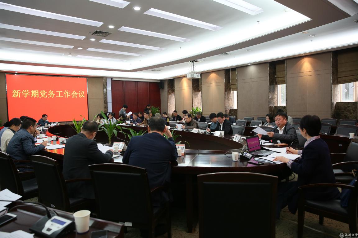 3月15日上午,校党委书记林娟娟召开新学期党务工作会议,校领导牟德刚、赵敏、吴金法、蔡曙光、郑信军,各党群部门负责人,各党总支(分党委)书记、副书记、保卫处负责人等参加会议。