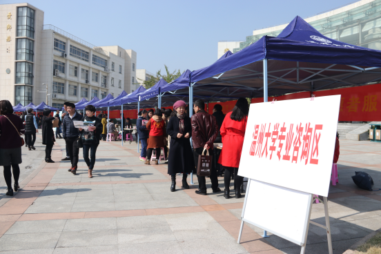 3月11日,距离高考不足100天。由我校承办的2018三位一体、高职提前招生咨询会(温州站)在南校区岩松堂喷泉广场举行。来自省内80余所高校招办负责人到咨询现场,与温州地区考生和家长进行交流。