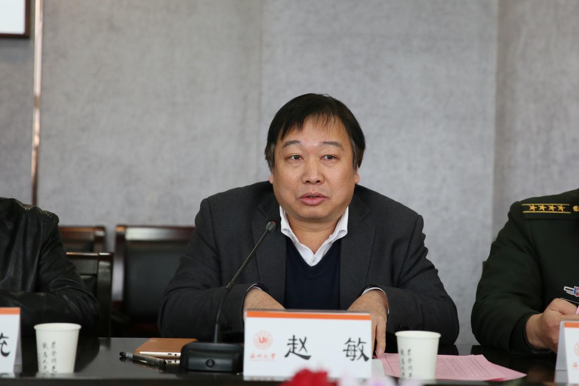 座谈会上,赵敏向各级领导对学校国防教育事业和征兵工作的支持表示感谢,并简要向与会人员介绍了我校事业发展的基本情况。他指出,学校历来高度重视大学生国防教育和征兵工作,将国防教育和征兵工作作为学校德育和思想政治工作的重要环节来抓,全面认真贯彻落实省、市征兵工作有关文件和通知要求,落实制度、统一协调、强化服务、突出特色,圆满完成了征兵工作任务。在征兵工作领导机制和政策保障上,形成了 “1+1+2”的工作动员机制;在征兵宣传动员上,形成了“1+5”宣传教育模式;在为让入伍和退伍学生安心、放心和暖心上,形成了“1+3”的管理服务体系。