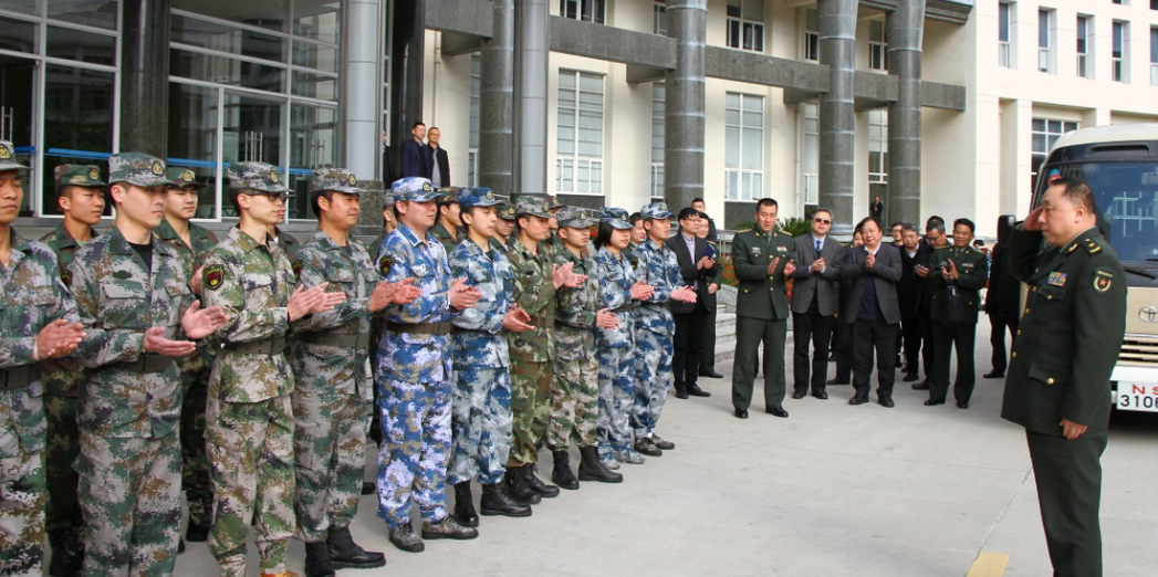 我校退伍学生列队迎接工作组。退伍学生代表向工作组一行简要介绍了我校退伍学生的情况。周少锋寄语勉励退伍学生要时刻不忘部队生活经历,谨记部队的优良传统,趁着大好时代,好好学习,做好的榜样。随后,调研组一行实地查看了我校人武部和征兵工作站建设情况。