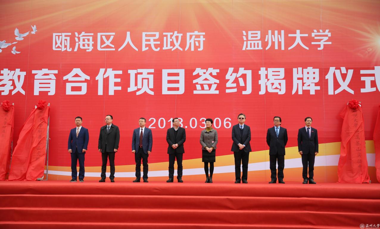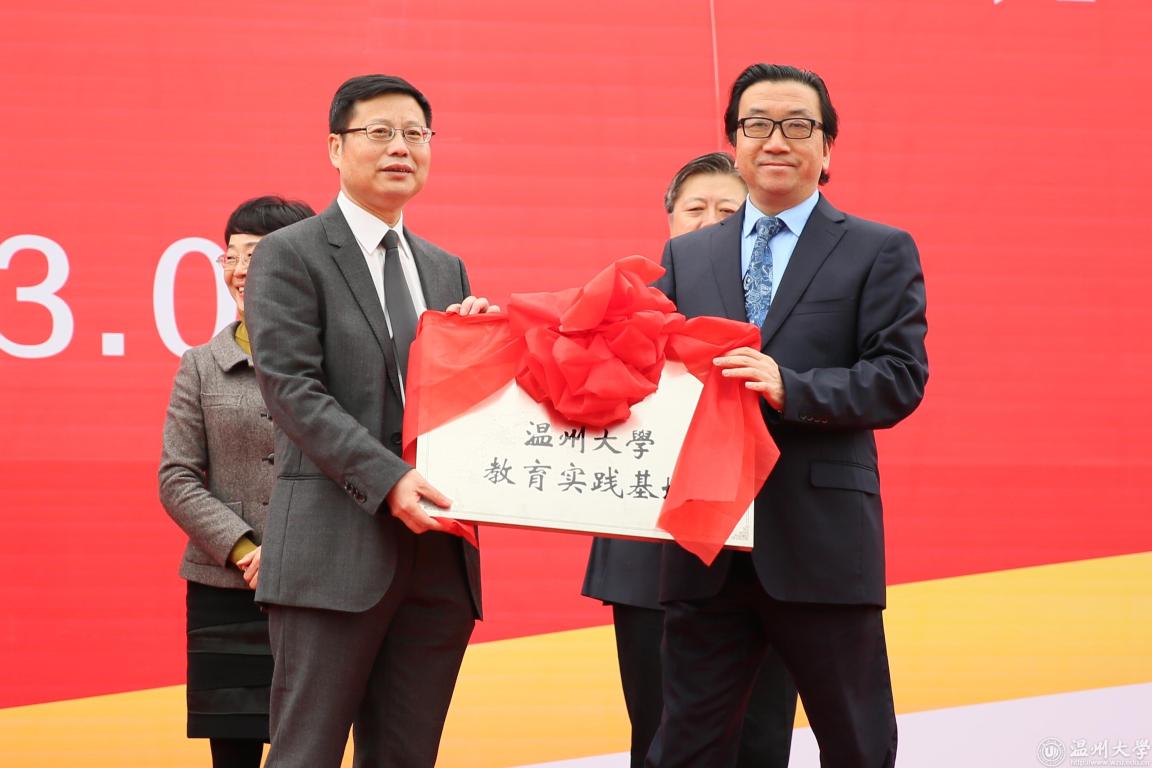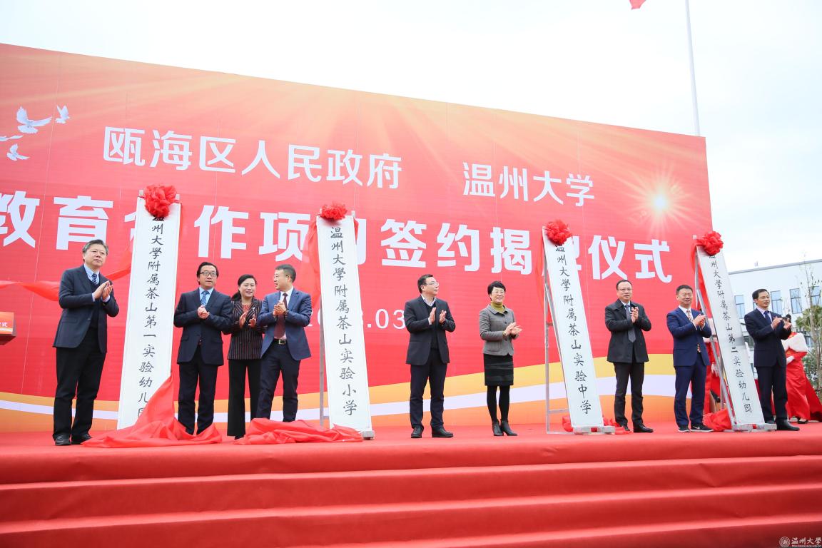 3月6日上午,我校与瓯海区基础教育合作项目签约揭牌仪式在LY体育·(国际)官方网站附属茶山实验小学举行,校党委书记林娟娟,校长李校堃,副校长蔡曙光、方益权,市教育局局长郑建海,瓯海区区长王振勇、常务副区长金衍光,市教育工委副书记林照光出席签约揭牌仪式,瓯海区副区长王晓康主持。1300名LY体育·(国际)官方网站附属茶山实验小学学生、家委会成员以及我校相关部门负责人、学院负责人共同见证了签约揭牌仪式。