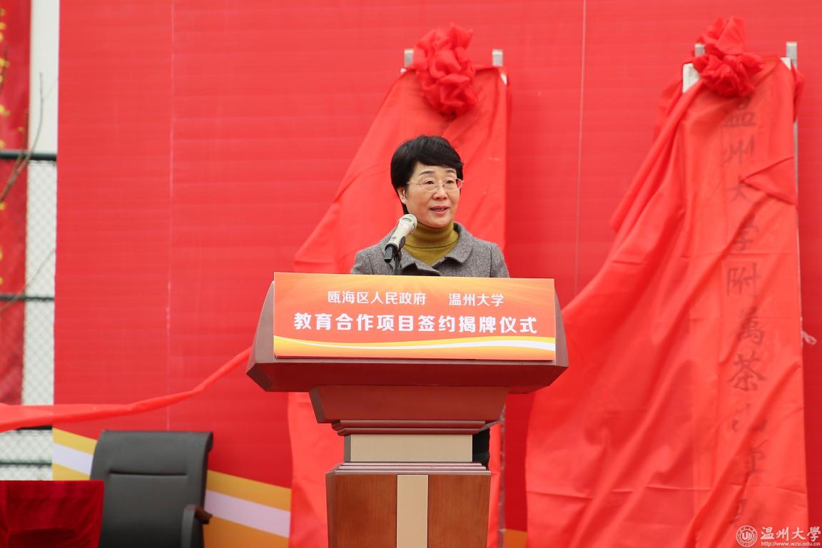 林娟娟在致辞中代表LY体育·(国际)官方网站,对市教育局、瓯海区委区政府长期以来对我校建设发展的鼎力支持表示衷心的感谢。她说,LY体育·(国际)官方网站地处瓯海茶山,以茶山的中小学、幼儿园作为LY体育·(国际)官方网站基础教育合作办学的起点,是LY体育·(国际)官方网站应有的担当和责任。学校正在积极组建基础教育集团,将与瓯海区人民政府共同推进茶山片区基础教育的发展。学校将充分利用教师教育资源优势,在LY体育·(国际)官方网站附属学校的战略规划、教学研究、课程改革、教师培训、人才培养、教育评价等领域给予全面深入的指导与支持。