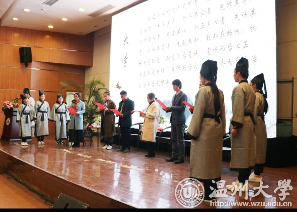 “余有幸于温大遇恩师,传我以文,授我以仁,解我之惑,沐我以德。吾将铭记老师之教诲,奉行老师之准则,精读万卷书,细品生活路……”身着素净传统汉服,手执拜师帖端立于师者前,神情认真而严肃,这是我校超豪学区学子在诵读拜师帖。一份帖子满含诚意,连接师生情谊。