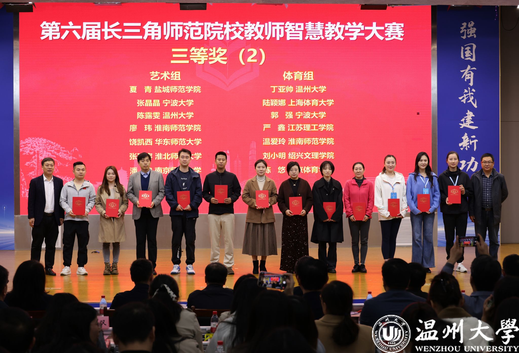 11月17日,由浙江省教育厅、安徽省教育厅、上海市教育委员会和江苏省教育厅联合举办的第六届长三角师范院校教师智慧教学大赛在安徽师范大学圆满落幕。我校斩获五项大奖,获奖总数位列浙江省第一名!通过各省初赛,来自浙江省、江苏省、安徽省、上海市的31所高校69名教师入围决赛。经过校院两级的精心准备和反复磨课与研课,我校入围决赛人数最多,且全部获奖,创下了该项比赛中我校历年来的最好成绩!其中,生环学院王子铭、人文学院余琼、音乐学院李恒子老师分别获二等奖,音乐学院陈露雯、体育学院丁亚帅老师分别获三等奖。