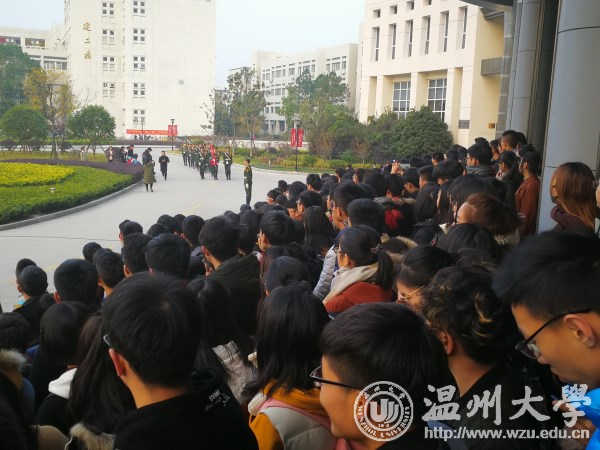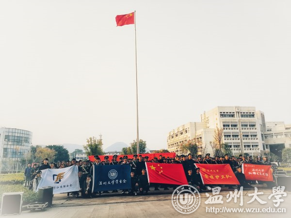 齐步走、正步走……国旗护卫队队员护送国旗冉冉升起,温大师生高唱国歌,庄严地凝视着国旗升起的方向。 “在中国,只要有硝烟就有勇士;在中国,只要有危难就有脊梁;在中国,只要有青年就有了希望。”校学生会副主席叶温钰作国旗下的演讲,描述了那一段饱经沧桑的历史中波澜壮阔的斗争。