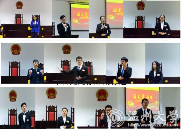 为贯彻落实党和国家关于建设社会主义法治国家的方略和习近平总书记关于全面依法治国的重要论述精神,深入实施我校“爱祖国、爱家乡、爱学校、爱他人、爱自己”五爱主题教育活动精神,在我国第四个国家宪法日来临之际,校党委宣传部主办,法政学院、校法学协会等联合举办的“讲宪法·享宪法”宪法主题演讲赛决赛拉开帷幕,共有来自全校各学院的12位选手参加。 比赛中,选手们引经据典娓娓道来,结合现实法治案例和公民工作生活,对我国宪法的发展历史以及对社会的重要作用从多角度作精彩解读与阐述,展现选手们对宪法的深刻认识与独特见解,表达了青年学子投身法治国家实现美好蓝图的信心和决心,精彩的演讲赢得观众阵阵掌声。经过激烈的角逐,蔡豪杰获得一等奖,张钰松、朱纯慧获得二等奖,胡天昊、马锐以及陆亲获得三等奖,其余选手获得优秀奖。 宪法主题演讲比赛让宪法精神走进校园,丰富了校园生活,浓郁了校园文化氛围,展示了温大学子的精神风貌。