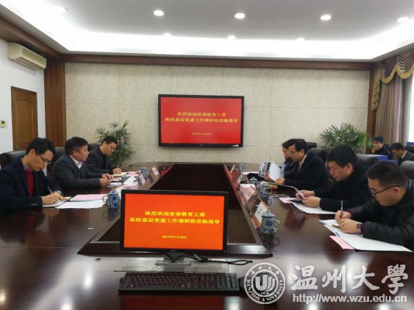 11月23日上午,省委教育工委调研检查组一行4人在宁波工程学院党委副书记陈方猛的带领下,对我校基层党建工作进行了专项调研检查。检查组听取了校党委副书记赵敏代表党委作学校党建工作的汇报。校党委委员、组织部部长郑信军出席会议。