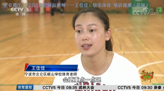 11月10日,央视CCTV-5(晨报)栏目播出《我是体育教师——王佳佳:快乐体育 收获健康》,备受我校师生关注。 王佳佳是我校2010届体育教育(师范)专业毕业生。在校期间,她认真学习、刻苦训练,成绩优异,多次荣获奖学金,是一位品学兼优的学生。热爱健美操运动的她聪慧敏捷、乐观开朗、积极向上,曾参加省健美操大赛并获奖。在毕业后七年的教学生涯里,她一直致力于小学健康体育教育,研究出各种各样有趣的教学方式,多次获得省市区级教学荣誉,并在2016年全国中小学生体育教学技能评比中荣获一等奖。 每一堂课,她都要做精心准备;每一堂课,她都有创新做法。秉承温大“求学问是,敢为人先”的校训精神,毕业后成为体育教师的王佳佳,始终坚持“快乐体育,健康体育”的教育理念,给学生带去精彩快乐的体育课,为体育教师树立了良好的榜样。在繁忙的工作之余,王佳佳还利用自身一技之长开展公益课堂活动,为其他老师教授瑜伽和健美操,深受好评。 “假如电力工人是光明使者,那么教师就是灵魂的工程师,我们要认真学好知识,扎实掌握各项师范教学技能。”“95后是当代社会发展的生力军,王佳佳是新时代人民教师,我们要向她学习,努力在平凡的岗位上做出不平凡的业绩。”我校师生纷纷表示,要不忘初心,不断奋进,以崭新的风貌投入到学习和工作中去,充分展现温大人的风采。