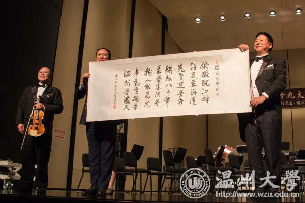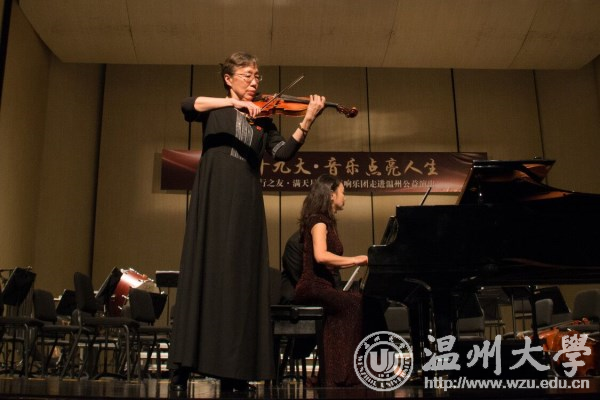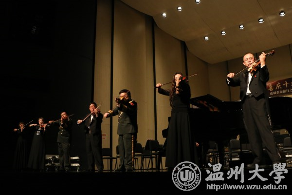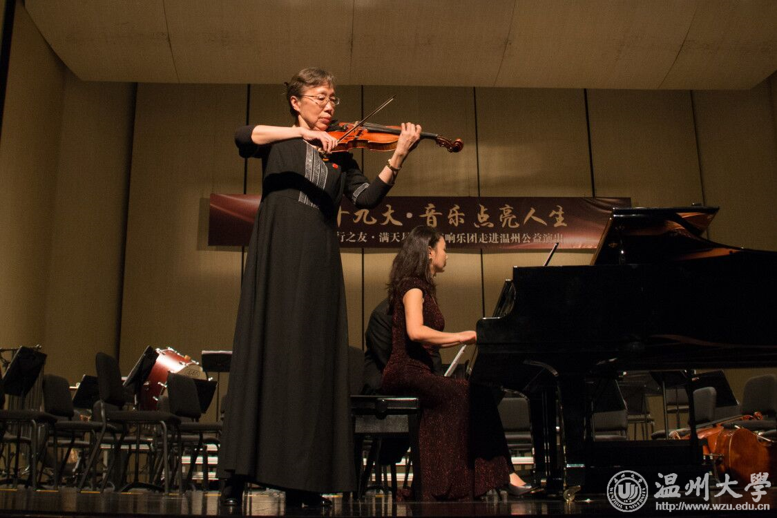“我60岁开始学的大提琴。在座的同学们都才20多岁,只要努力奋斗,都能取得成功。” 11月10日晚,满天星业余交响乐团《音乐点亮人生》公益演出走进温州,举办音乐会与我校师生分享音乐和人生。音乐会上,满天星业余交响乐团团长、中央社会主义学院党组书记叶小文以诙谐的语言讲述了学琴的趣事,并深情寄语温大学子,要不负青春,不负梦想。 交响乐团带来《卡门》《沉思》《新疆之春》《鸿雁》《山丹丹开花红艳艳》《红旗颂》《歌唱祖国》等作品,由郭沫若作词,李岚清谱曲的《鉴真东渡随想曲》掀起了音乐会的高潮。演出过程中穿插演奏者的个人分享环节。乐团还为我校现场赠诗。