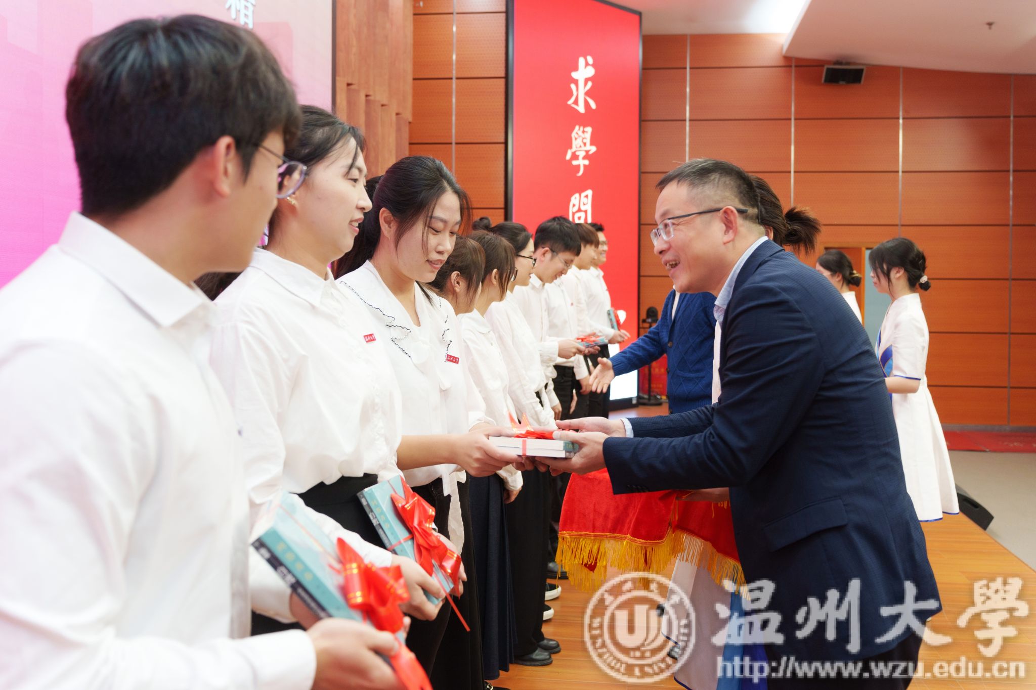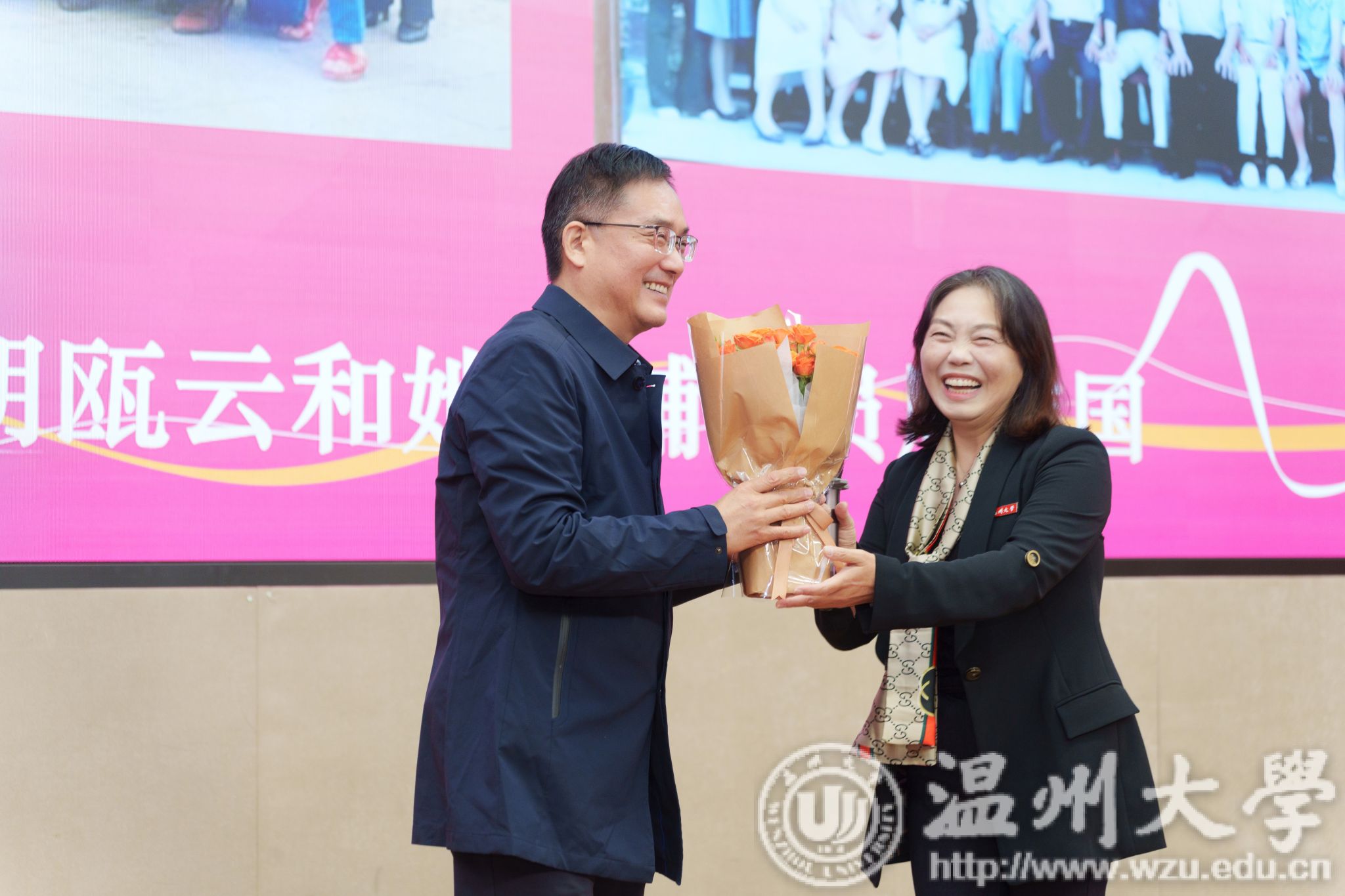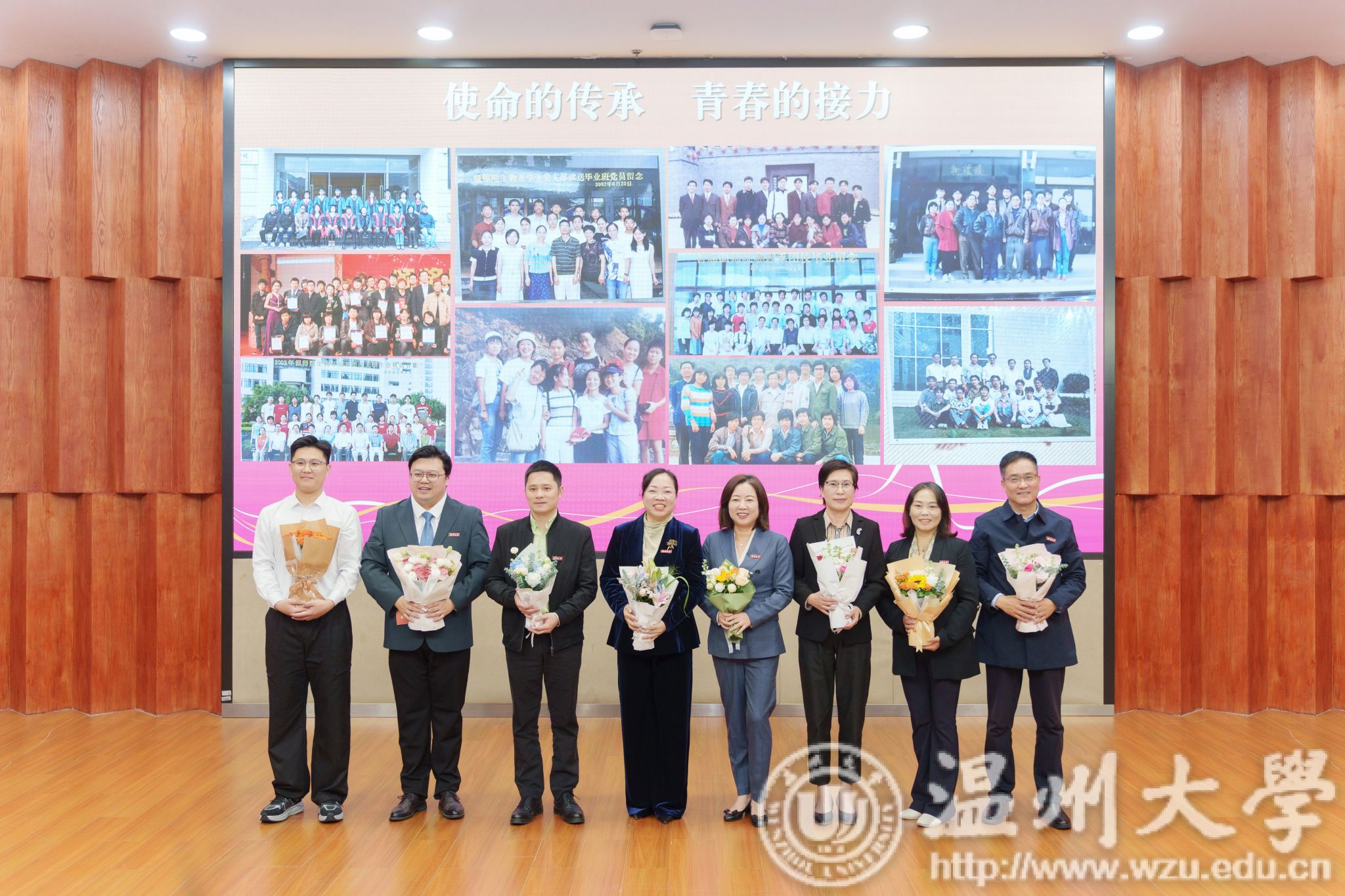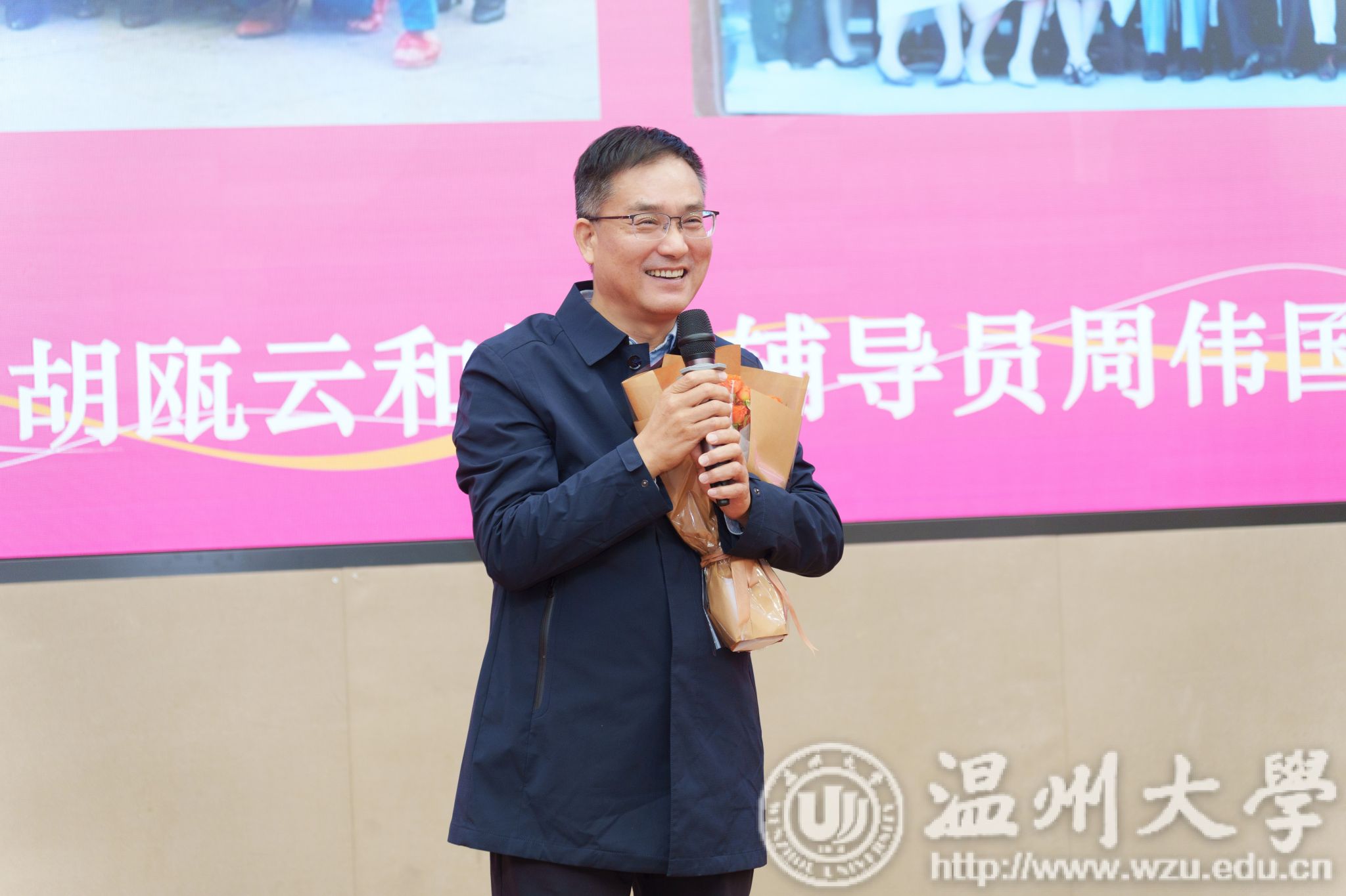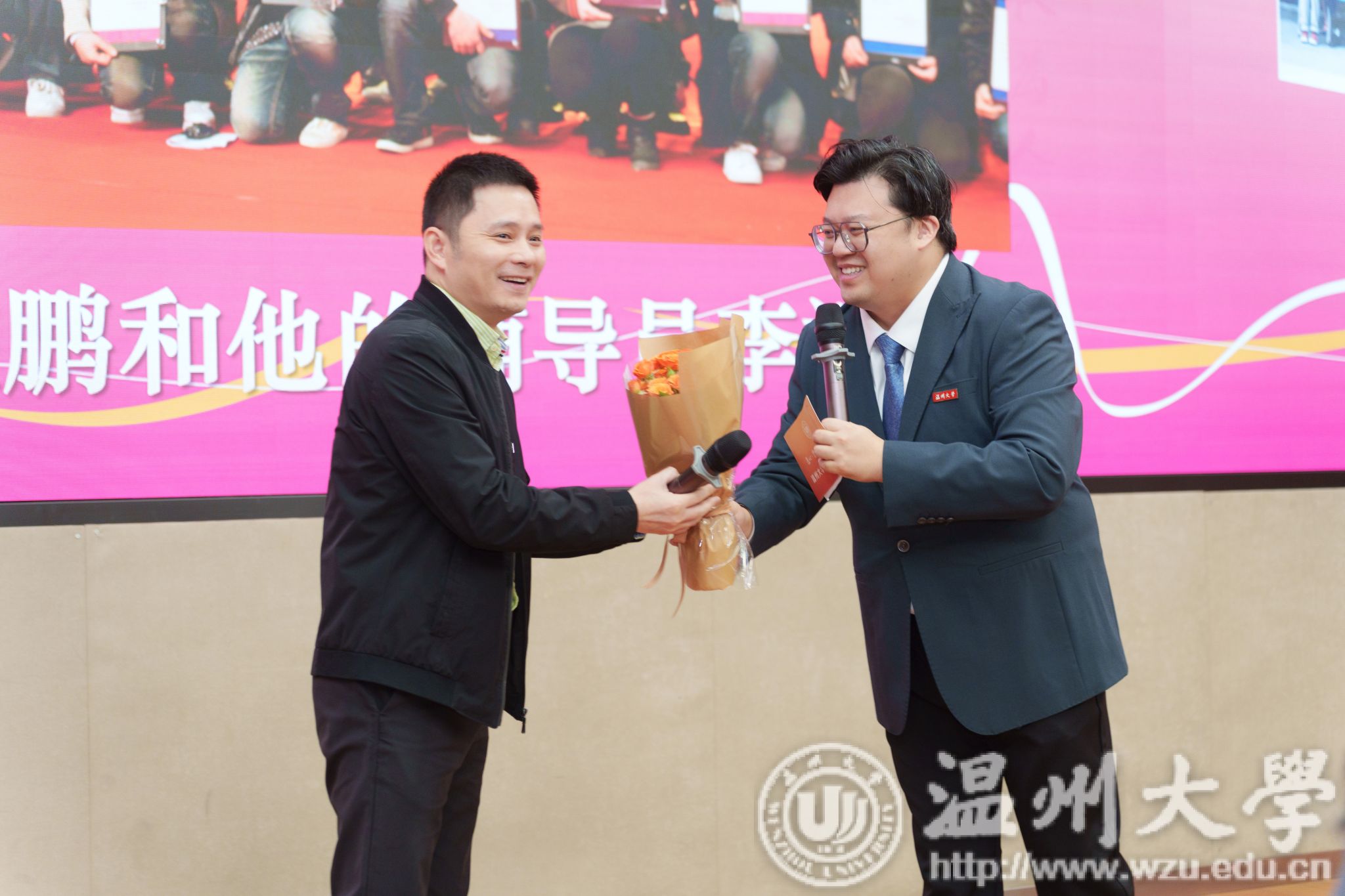 值得一提的是,学校辅导员队伍里有许多薪火相传的动人故事。“今天,我的辅导员也在现场!”这句话在开幕式上出现了7次。原来,辅导员队伍中的许多人曾经在温大读书,他们毕业后又恰留在母校担任辅导员。老师们纷纷回忆往昔,为自己的辅导员献上鲜花,现场掌声雷动,气氛热烈而温馨。