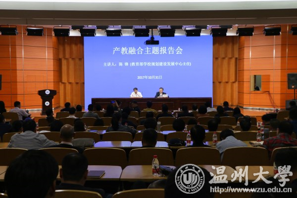 10月31日下午,教育部学校规划建设发展中心主任陈锋、温州市副市长郑朝阳、教育部学校规划建设发展中心创新发展处处长刘志敏、浙江省教育厅高教处副处长王国银等来校调研,市各相关单位代表、产教融合合作单位代表,温州各行业协会代表、全体校领导、中层干部、学科带头人、专业负责人等参加调研会。