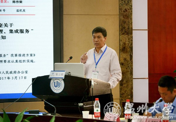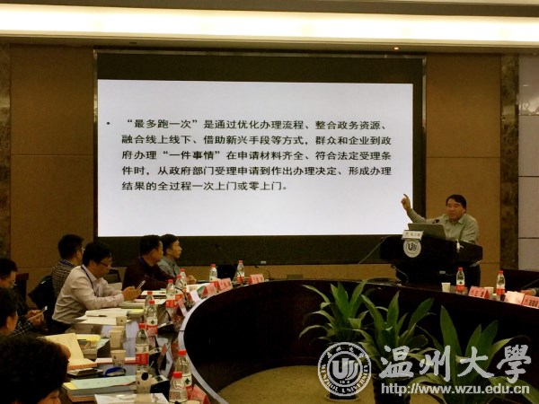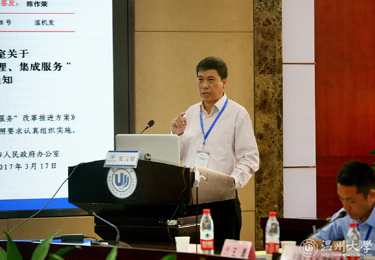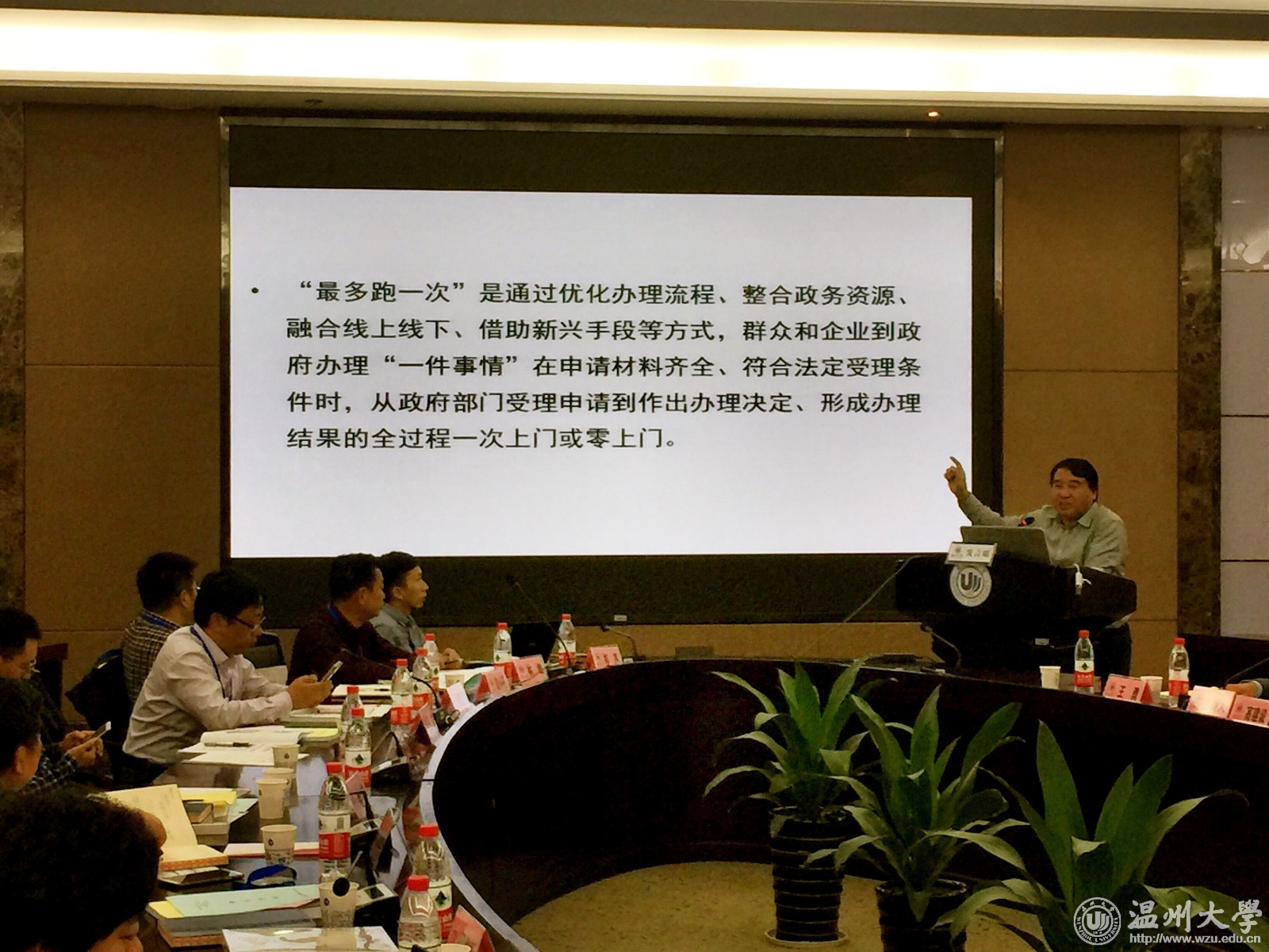 宁波大学商学院院长、浙江大学公共政策研究院副院长范柏乃教授,全国政府绩效管理研究会副秘书长、苏州大学尚虎平教授,温州市行政审批管理办公室(市公共资源交易管理委员会办公室)主任、党组书记王延申,上海交通大学中国城市治理研究院韩志明教授,苏州大学党委宣传部副部长余敏江教授,LY体育·(国际)官方网站地方政府绩效管理研究中心执行主任付翠莲教授分别作题为“着力处理好前行中的十大关系,将‘最多跑一次’改革进行到底”“政府潜绩评估的内容维度及评估指标的实证筛选研究”“以‘最多跑一次’为目标,深化审批制度改革”“国家治理的知识转向——以公民参与为中心的分析”“推进地方环境治理现代化的三维路径”“意义、逻辑、路径:基于‘最多跑一次’改革的分析”的发言。