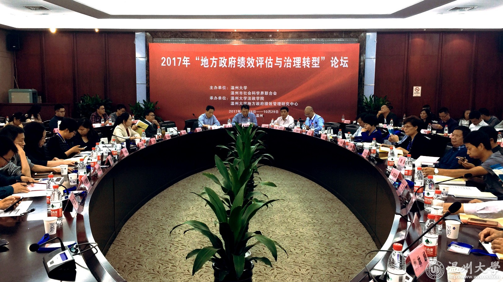 10月28日至29日,由我校和温州市社会科学界联合会主办,我校法政学院和地方政府绩效管理研究中心承办的2017年“地方政府绩效评估与治理转型”学术论坛召开。来自浙江大学、上海交通大学、苏州大学、河海大学、海南大学以及温州市审管办等全国各地80多位专家学者和政府代表参会。本次论坛就“进一步推动地方政府绩效评估研究与实践,探讨地方治理转型”的主题进行热烈、深度的研讨交流和学术对话。