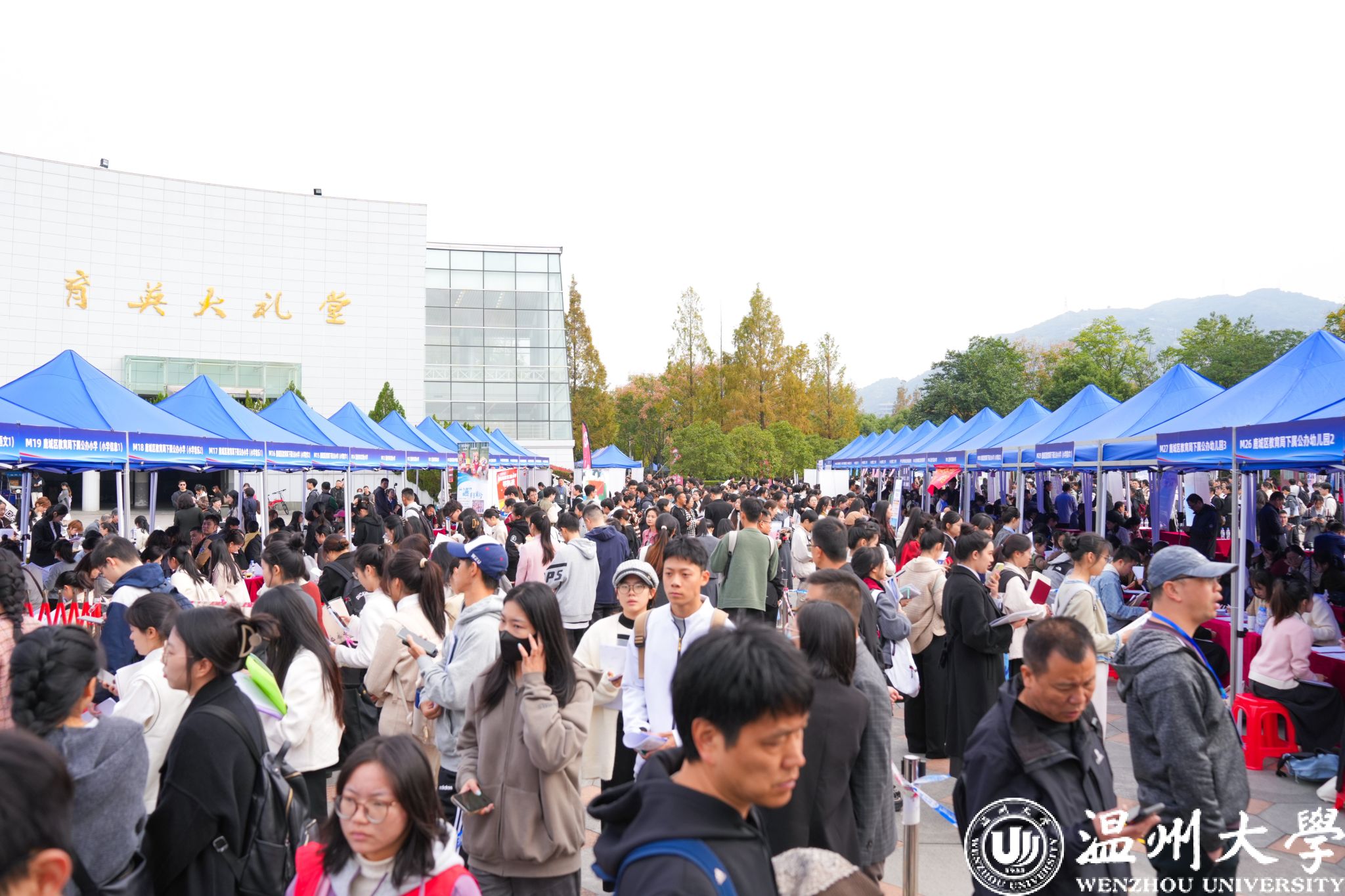 本次招聘会汇聚了温州市直属和各县(市、区)近300余家教育单位,提供岗位825个,除温大毕业生外,还吸引了来自南京师范大学、浙江师范大学等省内外高校近万人次到场应聘,盛况空前。招聘会现场热闹非凡、摩肩接踵,毕业生带着精心准备的简历排队投递给心仪的单位,并现场接受面谈和说课等考核。