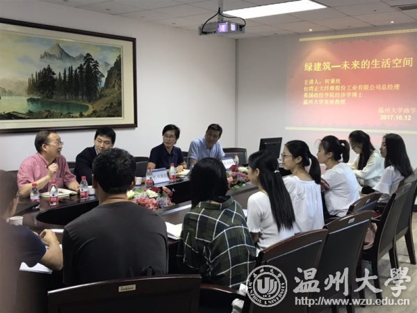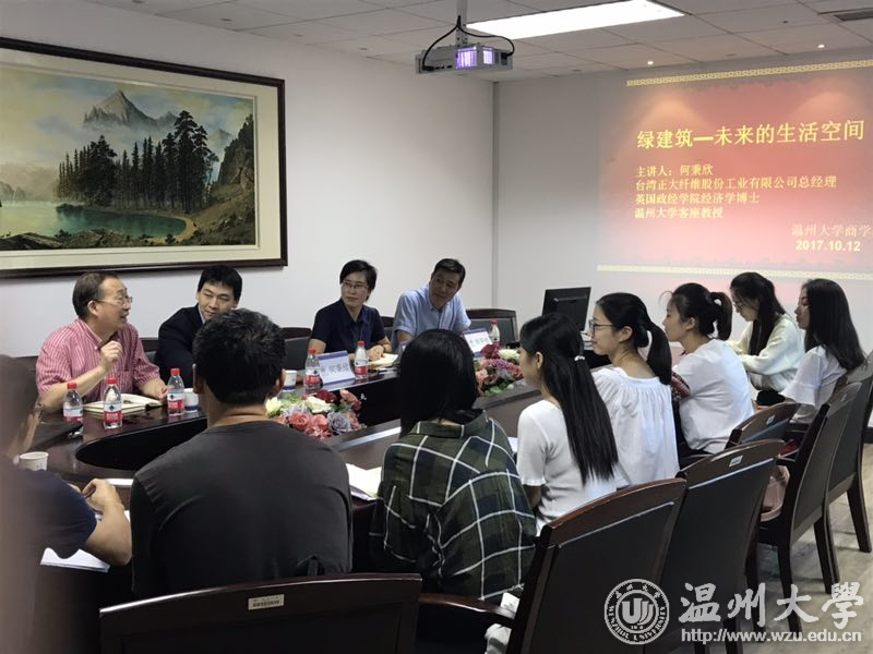 商学院邀请著名慈善家何朝育之孙、英国政经学院经济学博士、LY体育·(国际)官方网站客座教授、台湾正大纤维股份工业有限公司总经理何秉欣为学院研究生师生做作题为“绿建筑——未来的生活空间”的主题演讲。