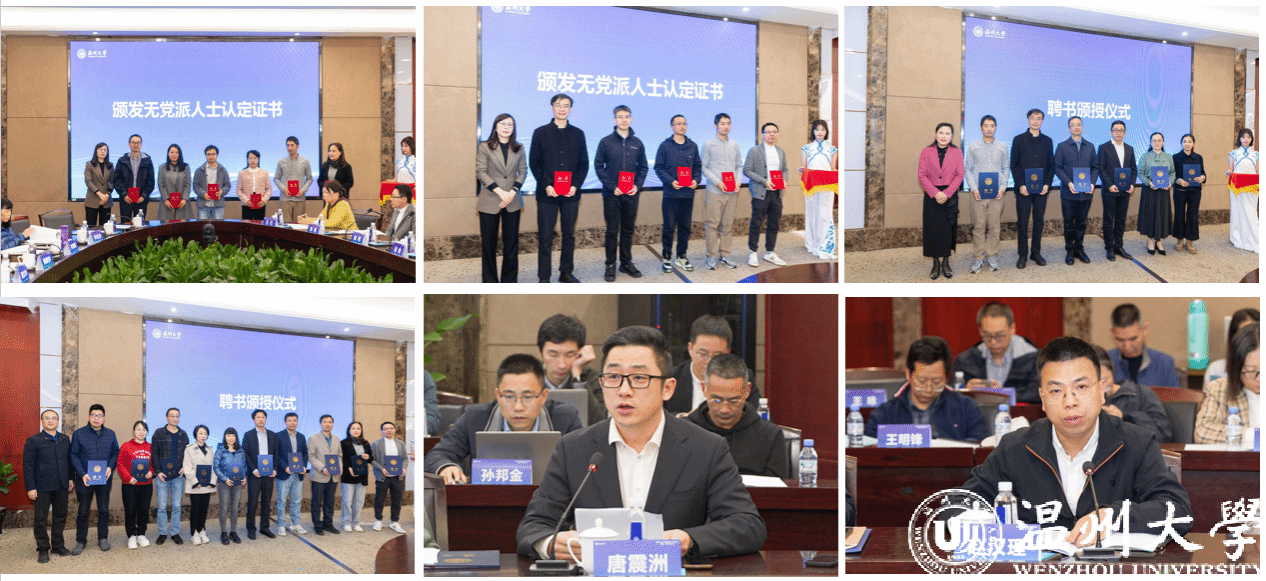 会上,吴静为新认定的14位无党派人士颁发证书,王晓康、叶凌群分别为新当选的班子和理事颁授聘书。唐震洲作表态发言。校民革基层委负责人赵汉理代表校各民主党派、统战团体向大会致贺词。