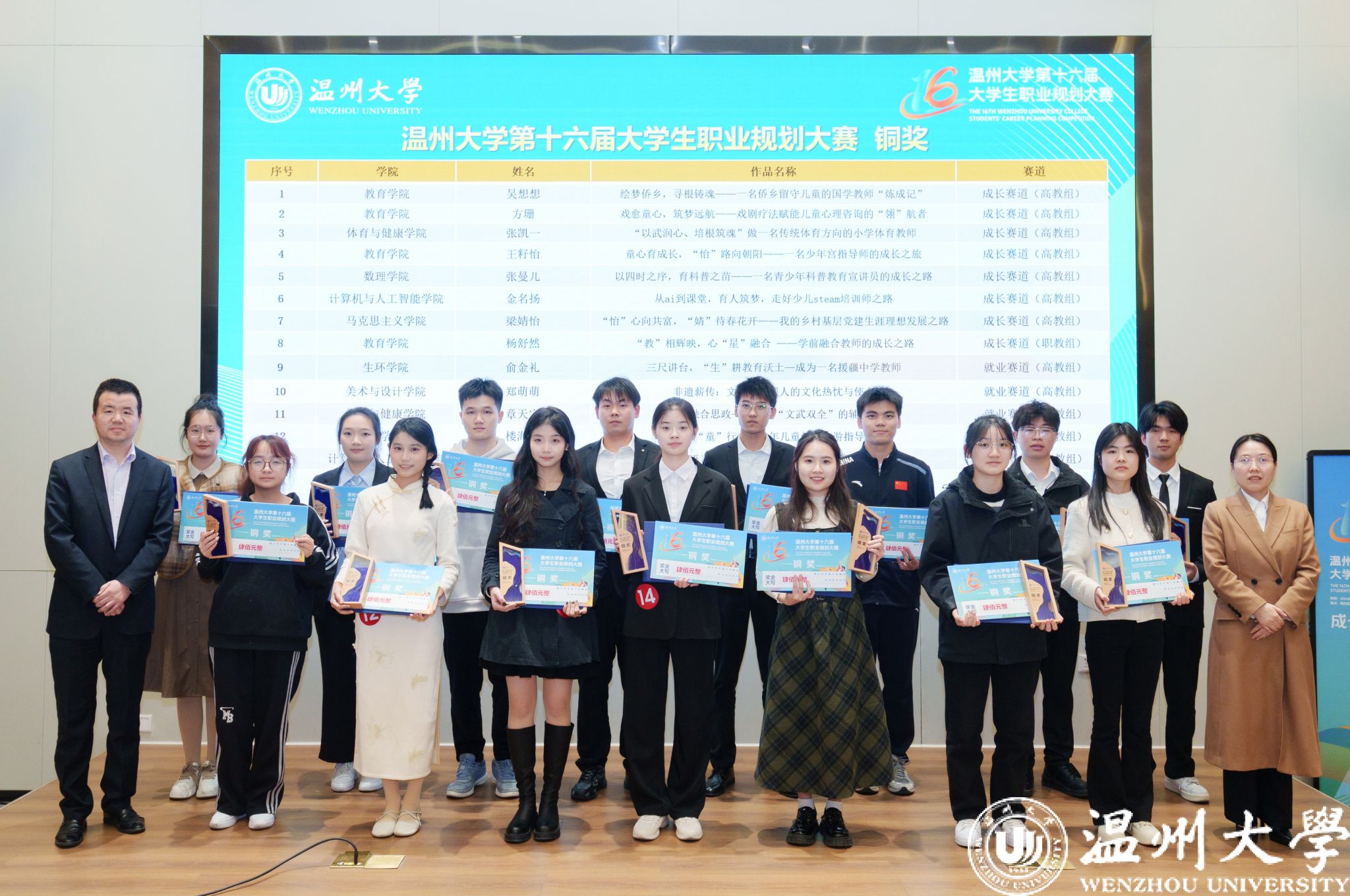 最终,经过选手现场展示、评委提问、专家点评等环节,《寻根华夏,传文四海——一名儿童华文教师的成长之旅》等6个作品获得金奖;《海韵匠心,筑梦深蓝——一名海洋技术工程师的成长之旅》等9个作品获得银奖;《“以武润心、培根筑魂”——做一名传统体育方向的小学体育教师》等15个作品获得铜奖;付睿等6位老师获评为“优秀指导教师”;马克思主义学院等6个学院获得“优秀组织奖”。