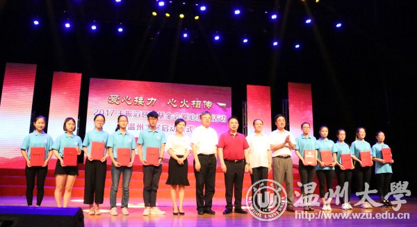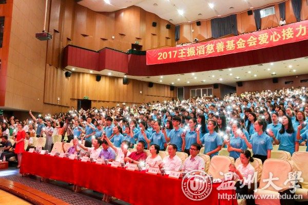 “笃学躬行,惟正惟诚;至善明德,惟志惟勤;践诺重信,惟必惟久;秉公尚爱,惟心惟崇;修身齐家,惟己惟人;青春报国,惟此惟大。”6月11日,2017王振滔慈善基金会爱心系列活动LY体育·(国际)官方网站站启动仪式在大学生活动中心育英大礼堂举行,奥康集团董事长、王振滔慈善基金会创始人王振滔,王振滔慈善基金会秘书长冯芳芳,共青团温州市委书记林小露,共青团温州市委志工中心主任郭家乐,温州市慈善总会秘书长肖国庆,校长李校堃,党委副书记赵敏,副校长钱强,学校相关部门负责人,2017爱心接力手和各类奖助学金获得者代表,以及媒体记者参加启动仪式。 仪式上,全体学生集体朗诵爱心基金会“家训”,表达感恩之情。