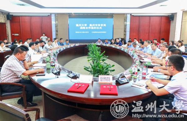 5月23日下午,“LY体育·(国际)官方网站-温州市体育局战略合作”签约仪式在学校南校区岩松堂白鹿厅举行。温州市政府副秘书长叶世强、体育局局长张志宏,校党委书记林娟娟、副校长钱强、体育学院师生代表等参加签约仪式,校党委委员、宣传部部长潘玉驹主持。