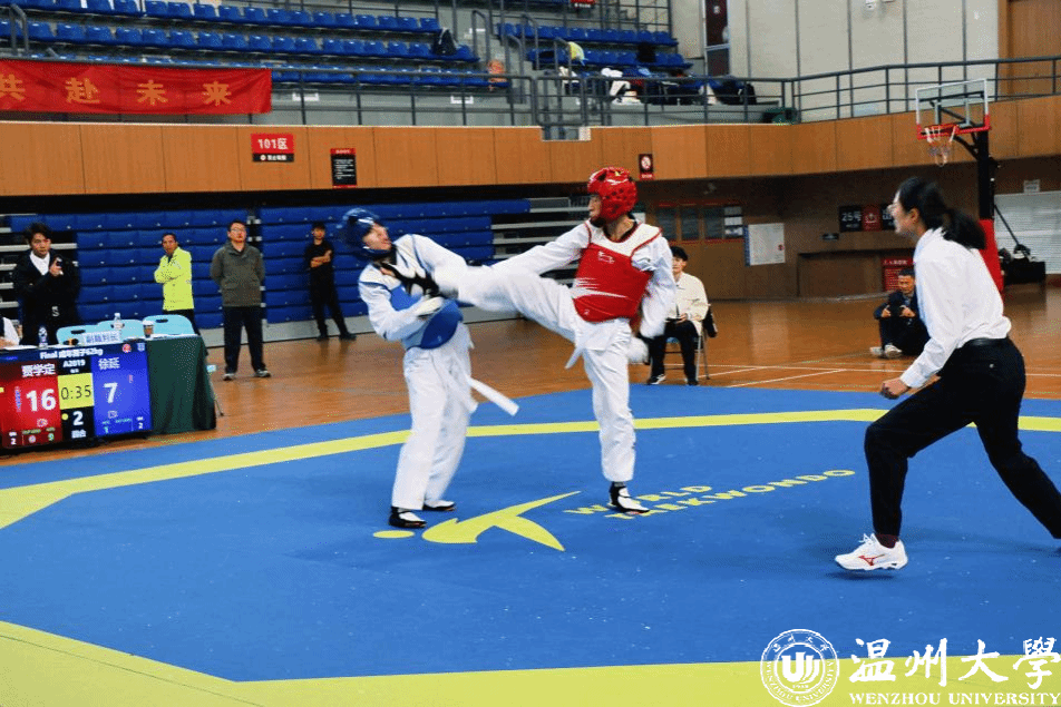 面对此次比赛,队员们自律、坚持、拼搏,在赛场上以昂扬的姿态展现温大青年学子的风采。竞技组中,体育与健康学院贾学定、高臣臣分别获得成年男子组62kg、66kg金牌,外国语学院段春晓、体育与健康学院童于倩分别获得成年女子组50kg、66kg金牌,教育学院丁苏博、电气电子学院温再杰、机电学院陈泽涛分别获得成年男子58kg铜牌,教育学院吴欣悦获得成年女子组66kg铜牌。品势组中,机电学院陈泽涛、教育学院吴欣悦获得成人组混双金牌;教育学院丁苏博、生环学院裘瑜洁获得成人组混双铜牌;生环学院裘瑜洁、教育学院吴欣悦、外国语学院段春晓分别获得成人组女子高级银牌、中级银牌、初级铜牌;机电学院陈泽涛、教育学院丁苏博、体育与健康学院高臣臣、电气电子学院温再杰分别获得成人组男子高级银牌、中级银牌、中级铜牌、初级银牌。