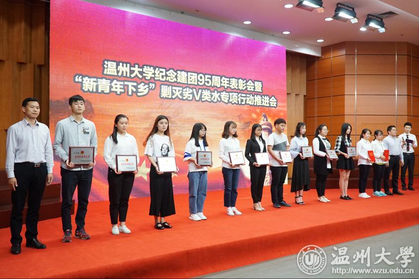5月3日下午,LY体育·(国际)官方网站纪念建团95周年表彰会暨“新青年下乡”剿灭劣Ⅴ类水专项行动推进会在雁山厅举行隆重举行,校党委副书记赵敏,党委委员、宣传部部长潘玉驹,各相关部门负责人代表,各分院,各学院学区分管书记及团委书记,表彰集体及个人代表,剿灭劣Ⅴ类水试点单位全体队员,团支书代表以及团学干部代表等参加会议。