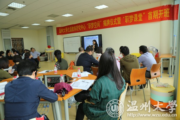 近日,我校生涯教育研究中心举行“职梦空间”揭牌暨“职梦课堂”首期开班仪式。校党委副书记赵敏,台湾生涯教育专家黄素菲(台湾生涯发展与咨商学会理事长、台湾阳明大学教授)、黄正旭(台湾生涯发展与咨商学会理事长、原台北商业大学教授),就业处全体人员,生涯教育研究中心成员,生涯规划与就业指导课程教师和LY体育·(国际)官方网站学生职业咨询团队部分成员等60余人参加仪式。