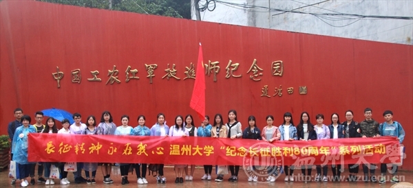 10月以来,我校团委号召各基层团支部,结合“纪念长征胜利80周年”专题开展系列团日活动,带领广大学子接受爱国主义再教育,弘扬伟大长征精神,将爱国主义教育和革命传统教育融入新生养成教育中,引领走好人生新的长征路。 教师教育学院16小学教育3班团支部开展以“爱国情 中国梦 我的梦”为主题系列活动,全体学生走入温州江心屿革命烈士纪念馆重温历史,观看长征电影,体验长征路,铭记祖国战胜苦难的历程,培养深厚的爱国之情。该院15小教4班团支部来到了温州市永嘉县红十三军旧址,用他们师范生独特的长征微课方式唤醒当代大学生对长征的记忆,更深刻认识到艰苦奋斗是传家宝,是立党、立国之本,也是个人的立德、立业之本;懂得了什么是长征精神——即坚定不移的革命信念,充满乐观的英雄气概,亲密团结的高尚品德,全心全意为人民服务的革命宗旨。 瓯江学院举行纪念红军长征胜利80周年书画作品展、朗诵《回顾长征胜利光辉岁月》、集体观看电影《长征》、制作衍纸作品、开展学习长征精神讲座、慰问参加过长征的老党员等丰富多彩的活动,来纪念红军长征胜利80周年。