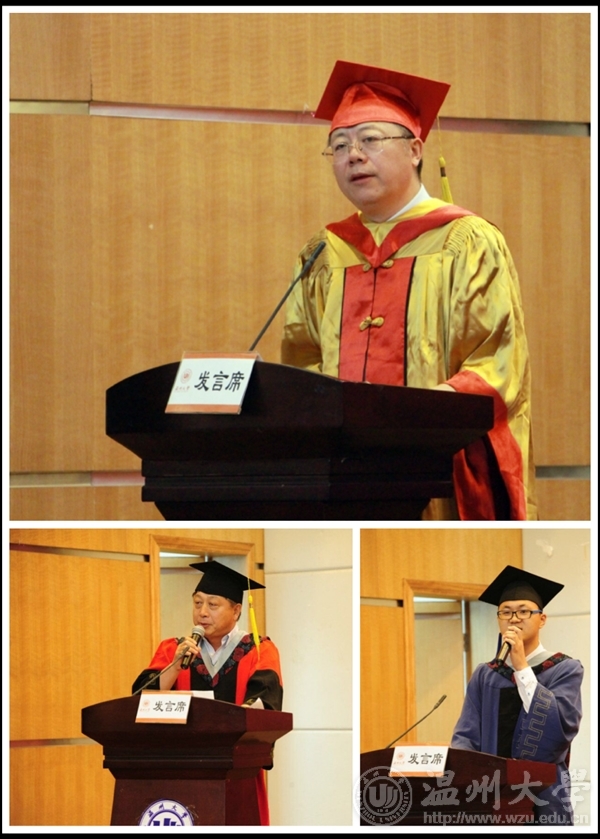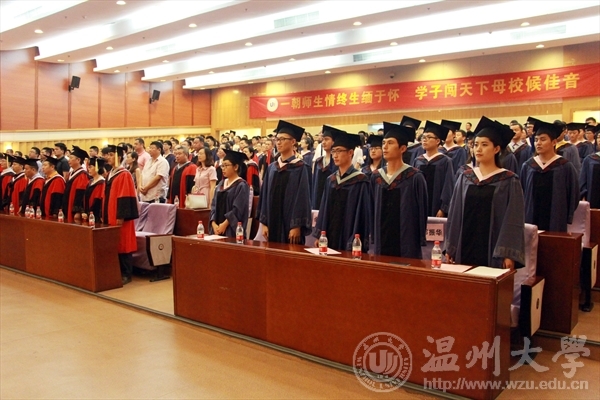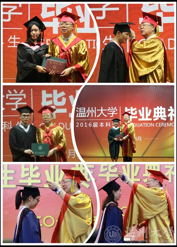 导师代表、生环学院院长吴明江代表硕士生导师殷切寄语毕业生,期待毕业研究生在这个充满机遇和挑战的时代,不断加强自己各方面的修养,学会兼收并蓄、团结协作,敢于创新、善于创造。 研究生代表雷云祥在发言中表达了对母校的感激和依依惜别之情,并表示要继续秉承"求学问是,敢为人先"的温大精神,努力拼搏,为自己的人生交上一份满意的答卷。 学校各学院陆续举行2016届本科生毕业典礼。各学院院长在毕业典礼上致辞,为毕业生送上诚挚祝福。李校堃为每位毕业生拨穗正冠,颁发毕业证书。