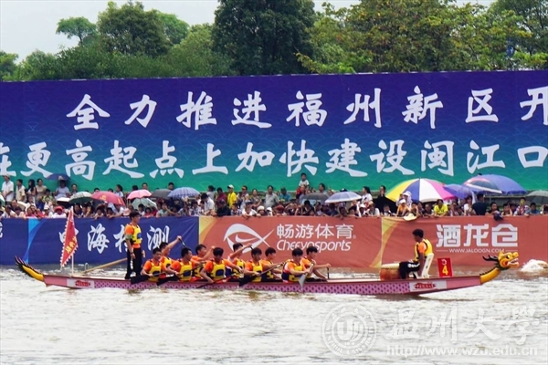 中华龙舟大赛福州站比赛于6月8-9日在榕城福州市国际会展中心前的浦下河龙舟池开桨。作为2016年的中华龙舟大赛端午赛,比赛分设职业组、青少年组、传统龙舟组,共举行10个单项决赛。36支标准龙舟、22支传统龙舟同台竞渡创赛事历史新高。我校龙舟队在青少年组的比赛中奋勇拼搏,取得100米直道竞速赛第四名、200米直道竞速赛第五名、500米直道竞速赛第四名、总积分第四名的好成绩,展现了温大青年的青春风采, 我校龙舟队男队是一支刚建队三个月的新队伍,由来自全校不同学院的十四名队员组成。比赛中,全体队员团结协作,奋勇争先。作为舵手,站在龙尾,手持长舵,目视前方,不敢放松;十名划手,手握五尺桨,乘龙游九天。鼓手坐龙首,鼓点如骤雨,指点江山间,亢龙出水面。龙船快速,引得江畔两岸数万人瞩目。