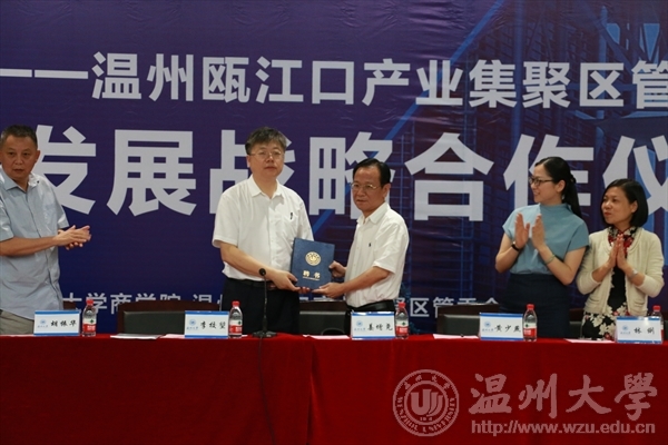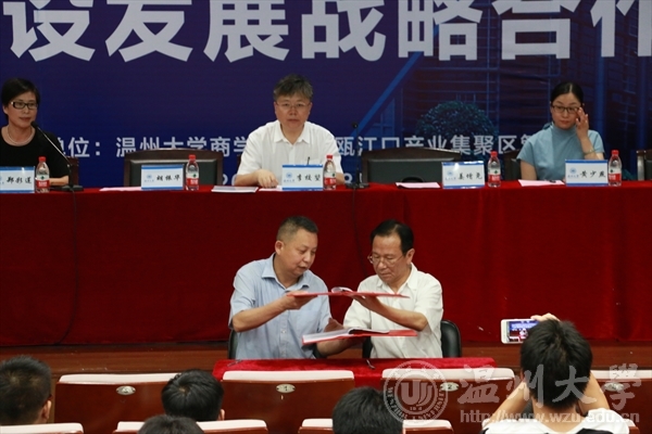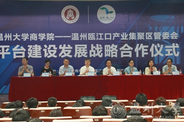 6月8日下午,LY体育·(国际)官方网站商学院与温州瓯江口产业集聚区管委员会平台建设发展战略合作仪式大会在北校区信息楼报告厅举行。校长李校堃、温州瓯江口产业集聚区管委员会主任姜增尧、温州瓯江口产业集聚区管委员会副主任黄少燕、学校有关单位负责人以及部分教师、学生代表参加仪式。