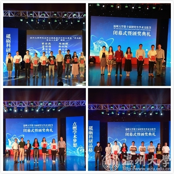 “这些年来,我校全体师生一起见证了研究生学术文化节的成长,看着它仿佛从一棵柔嫩的绿芽,吸收天地雨露,沐浴晨风暮霭,慢慢蜕变成一棵青青绿树,虽然当下的她还不够强壮,也谈不上高耸,但是我们完全可以预见没有什么力量能够阻挡它生机蓬勃、茁壮生长,最终实现矗立蓝天的崇高理想。”十年风雨历程,十年春华秋实。从2006年至今,我校研究生学术文化节已经走过了整整10个年头。 5月26日晚,在南校音乐厅我校第十届研究生学术文化节闭幕式如约而至。校长李校堃,校党委副书记牟德刚,校党委委员、研究生部部长陈安金,校党委委员、组织部部长方益权,学校各相关部门负责人,各研究生培养学院分管研究生工作的院长、书记、辅导员及研究生代表共400余人参加盛会。