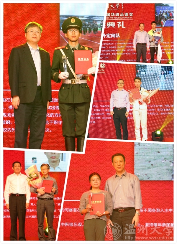 “兢兢业业,不忘初心;诲人不倦,春风化雨。指导学生学习实验,你像父亲一样严而有格;叮嘱学生穿衣吃饭,你像母亲一样爱而有度。30年如一日,你始终在教学一线耕耘;三秩酷暑寒冬,你一直在科技创新的征程上前行。仰之弥高,钻之弥坚,你是杏坛一颗璀璨耀眼的明星,你是照亮学生成长道路的灯塔。” “你以‘做人友善,做事敬业’为宗旨,创办企业,业绩骄人,‘功勋企业家’称号实至名归。你饮水思源,回报母校;心怀感恩,回馈社会,无私的奉献不能用数字来表达,你的捐助使万千学子梦想成真,你的爱心助力社会公益事业蓬勃发展。富而思源,善行天下,你赢得了人们的掌声与景仰。” …… 时隔一年,LY体育·(国际)官方网站“华峰品德奖”带着感动再度来袭。5月18日下午,我校举行第五届“华峰品德奖”颁奖典礼,在颁奖典礼上,组委会分别为吴华悦、申允徳、苏洁、何赛菲、黄靖、潘道品、蒋维清、国旗护卫队、户外定向队、青年志愿者服务中心等十位“华峰品德奖”获得者送上颁奖词。华峰集团党委书记周品英、总经理助理邹宗钧,校领导李校堃、牟德刚、陈安金、潘玉驹以及学校各单位负责人、师生代表出席颁奖典礼。