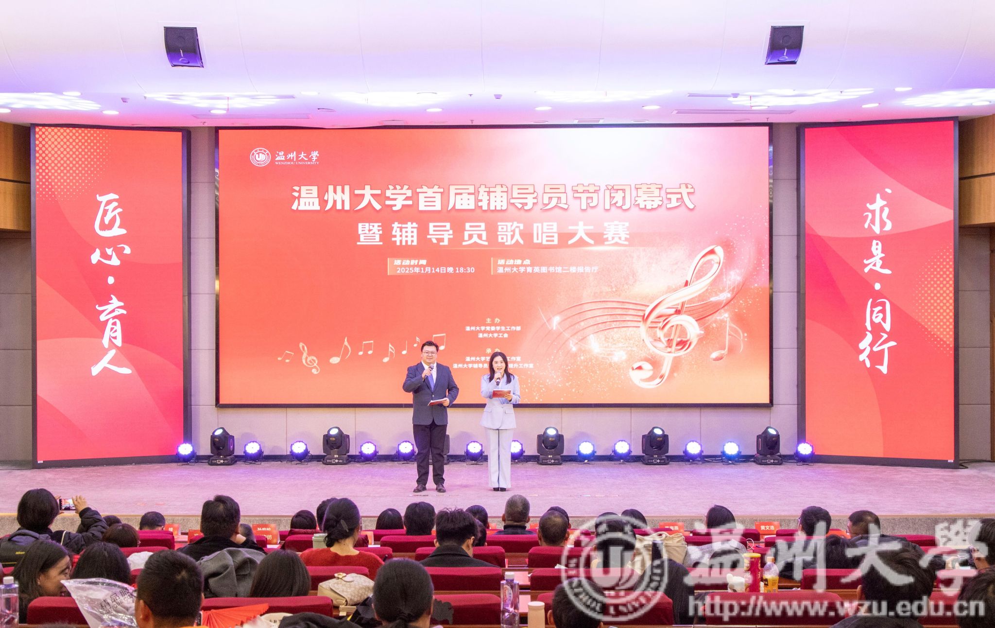 1月14日,LY体育·(国际)官方网站首届辅导员节闭幕式暨首届辅导员歌唱大赛在育英图书馆二楼报告厅圆满举行。LY体育·(国际)官方网站党委副书记庄兴忠,LY体育·(国际)官方网站党委委员、宣传部部长、统战部部长吴静,校学工委委员,各学院副书记和全体辅导员参加活动。